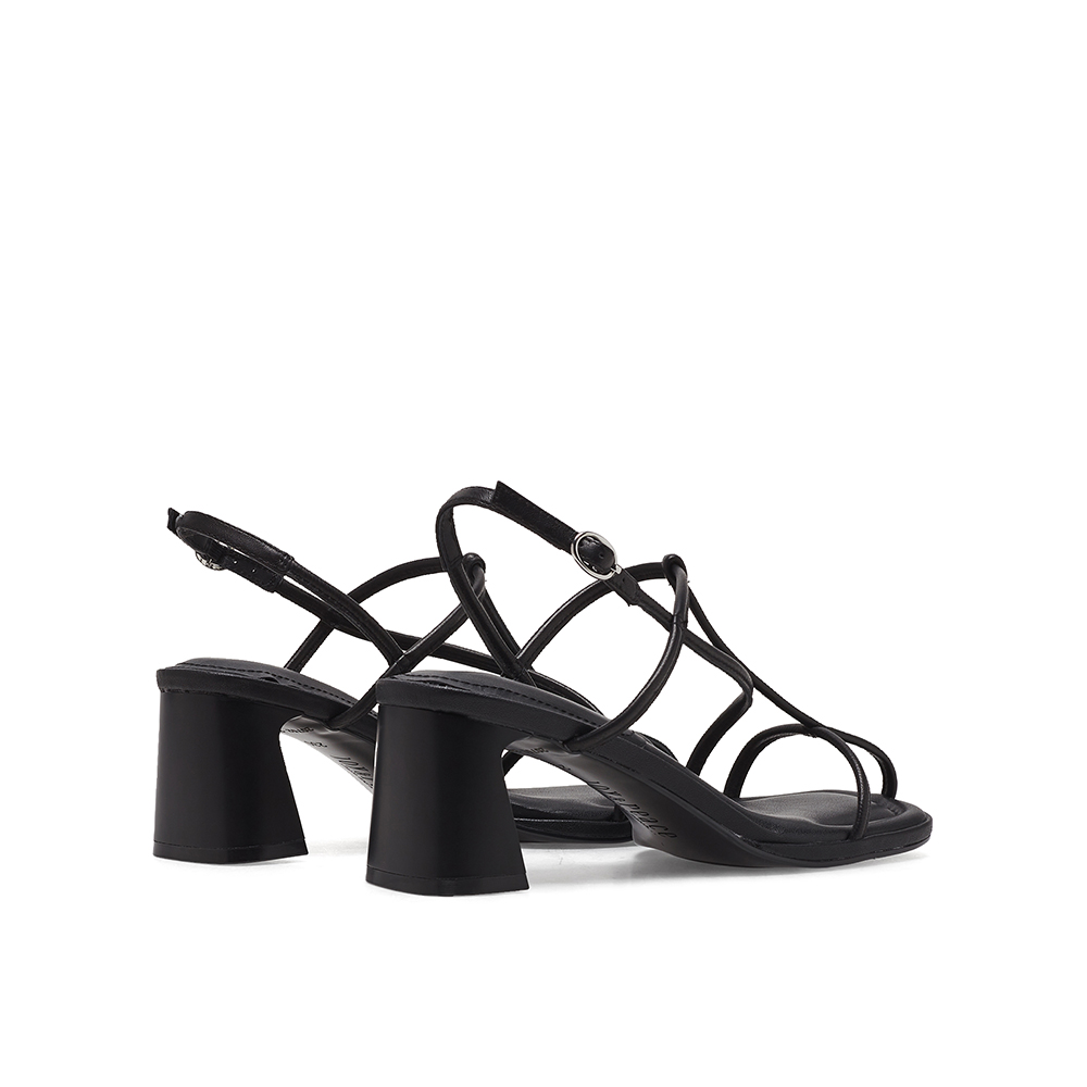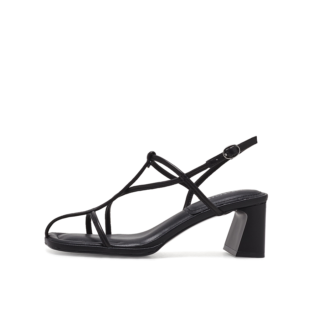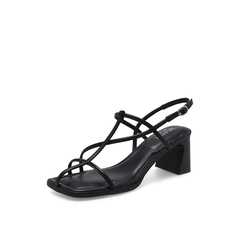 真美诗2023夏季新款商场同款方头粗跟条带罗马凉鞋20752BL3