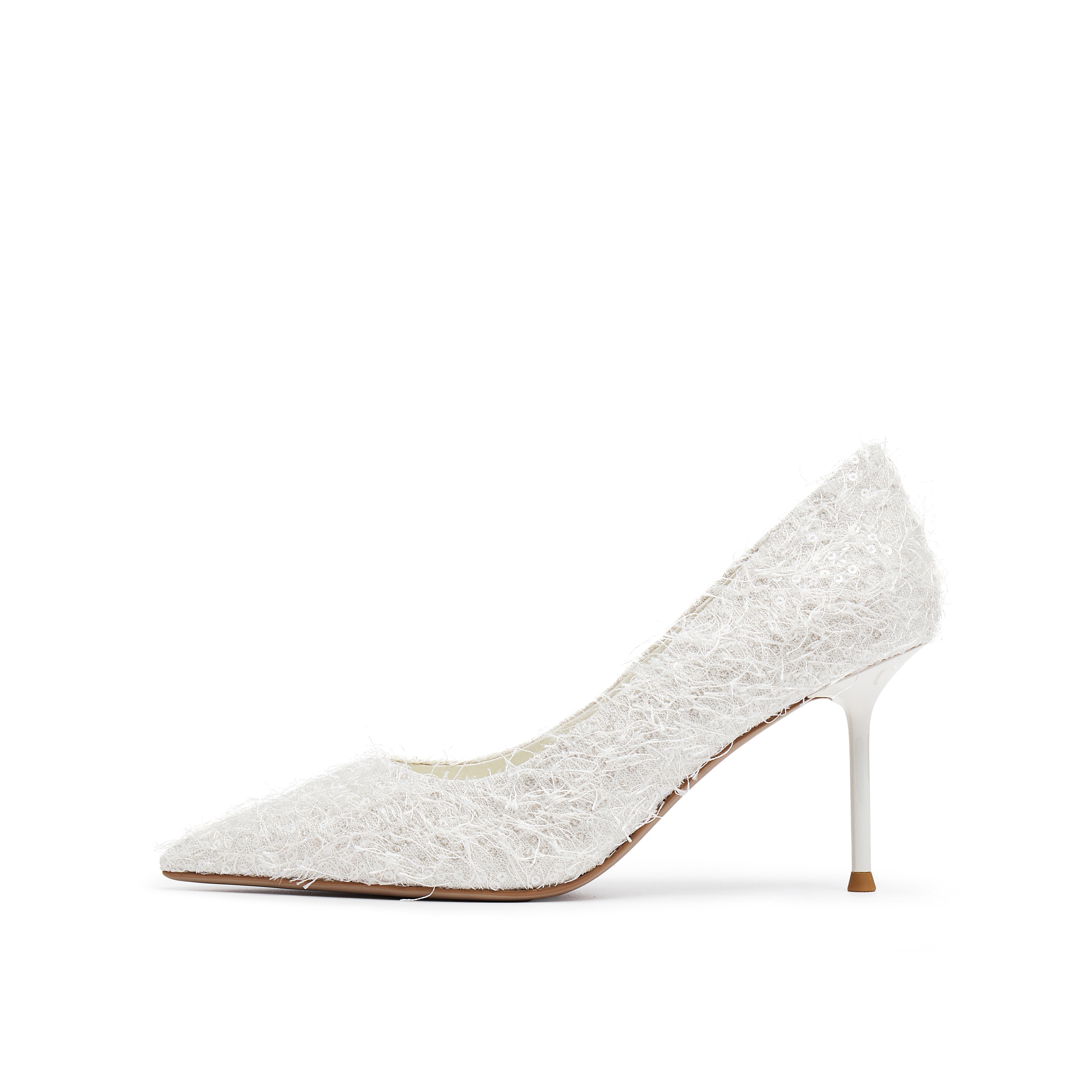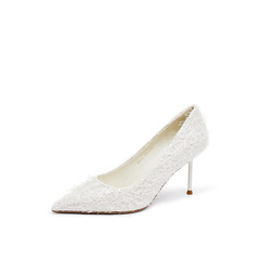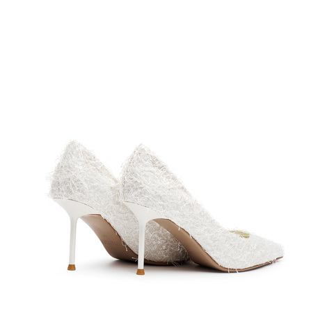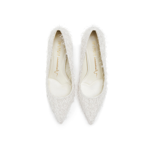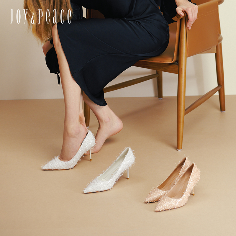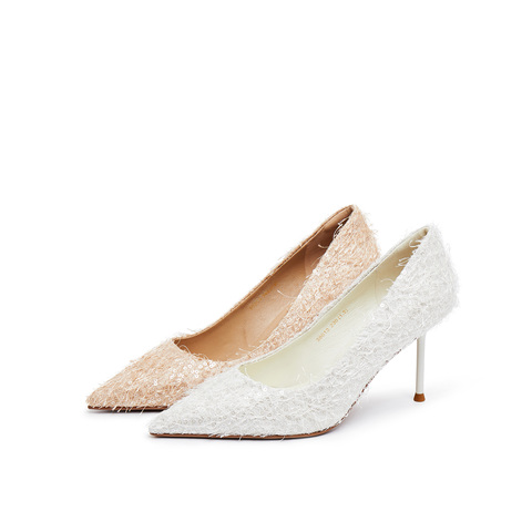 真美诗2025年秋季新款优雅流动羽毛尖头细高跟婚鞋38013CQ5