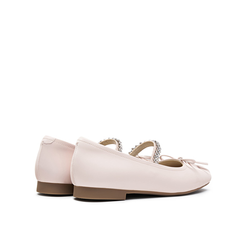 真美诗2024秋季新款蝴蝶结水钻一字带芭蕾鞋女51035CQ4
