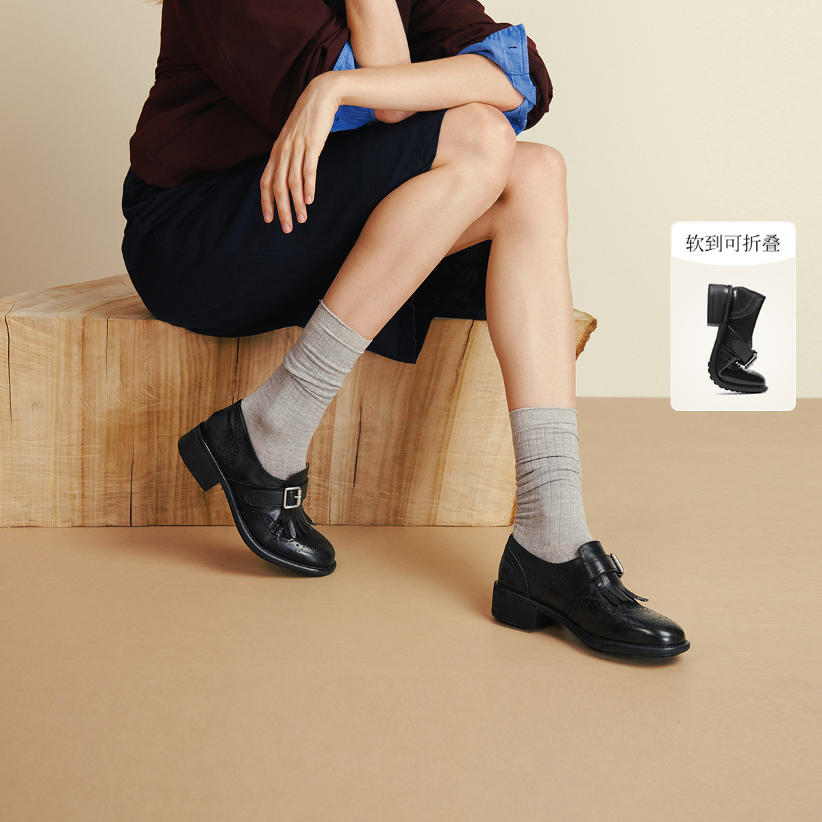 真美诗2025年秋季新款经典英伦风舒适软糯牛皮革女鞋61927CM5