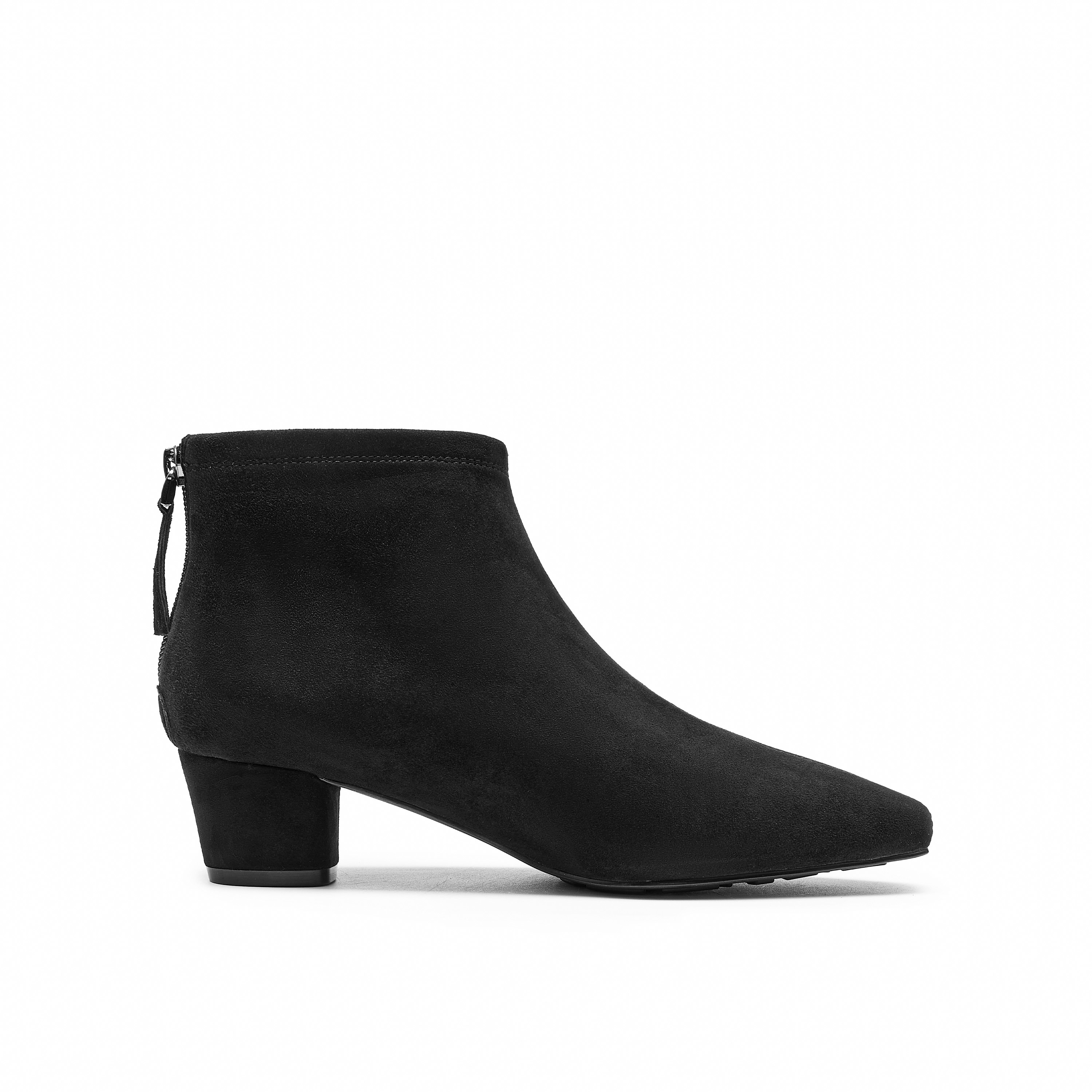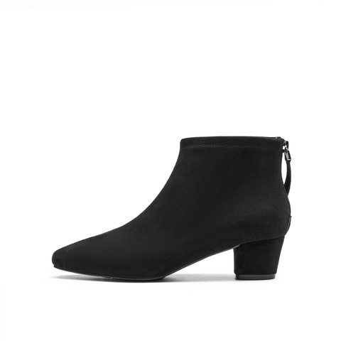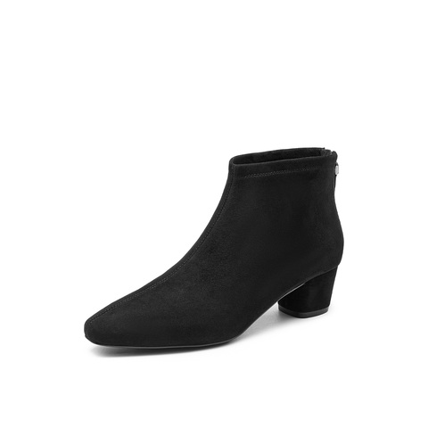 真美诗2025冬季新款复古羊绒秀气方头粗跟时装靴女69750DD5