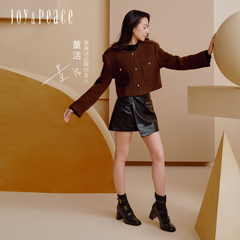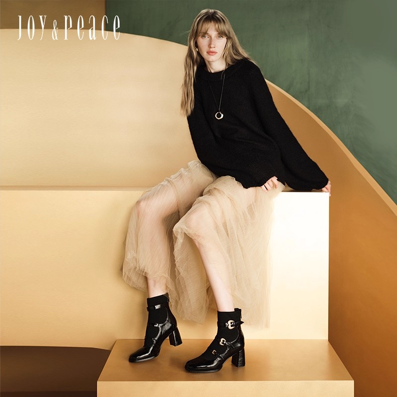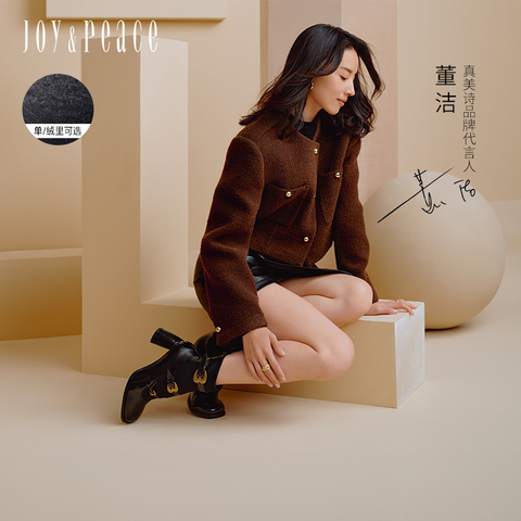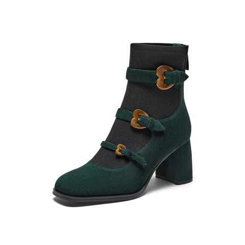 真美诗2025冬季新款商场同款古铜桃心扣高跟袜靴75Z03DD5