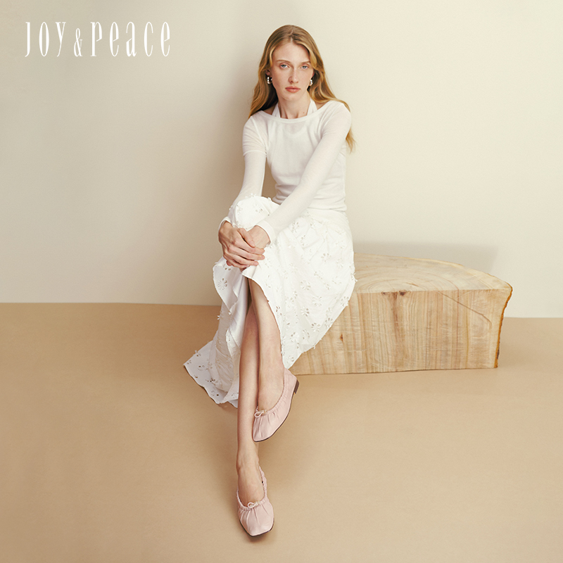 真美诗2025年秋季新款文艺优雅复古褶皱羊皮芭蕾舞鞋JR262CQ5