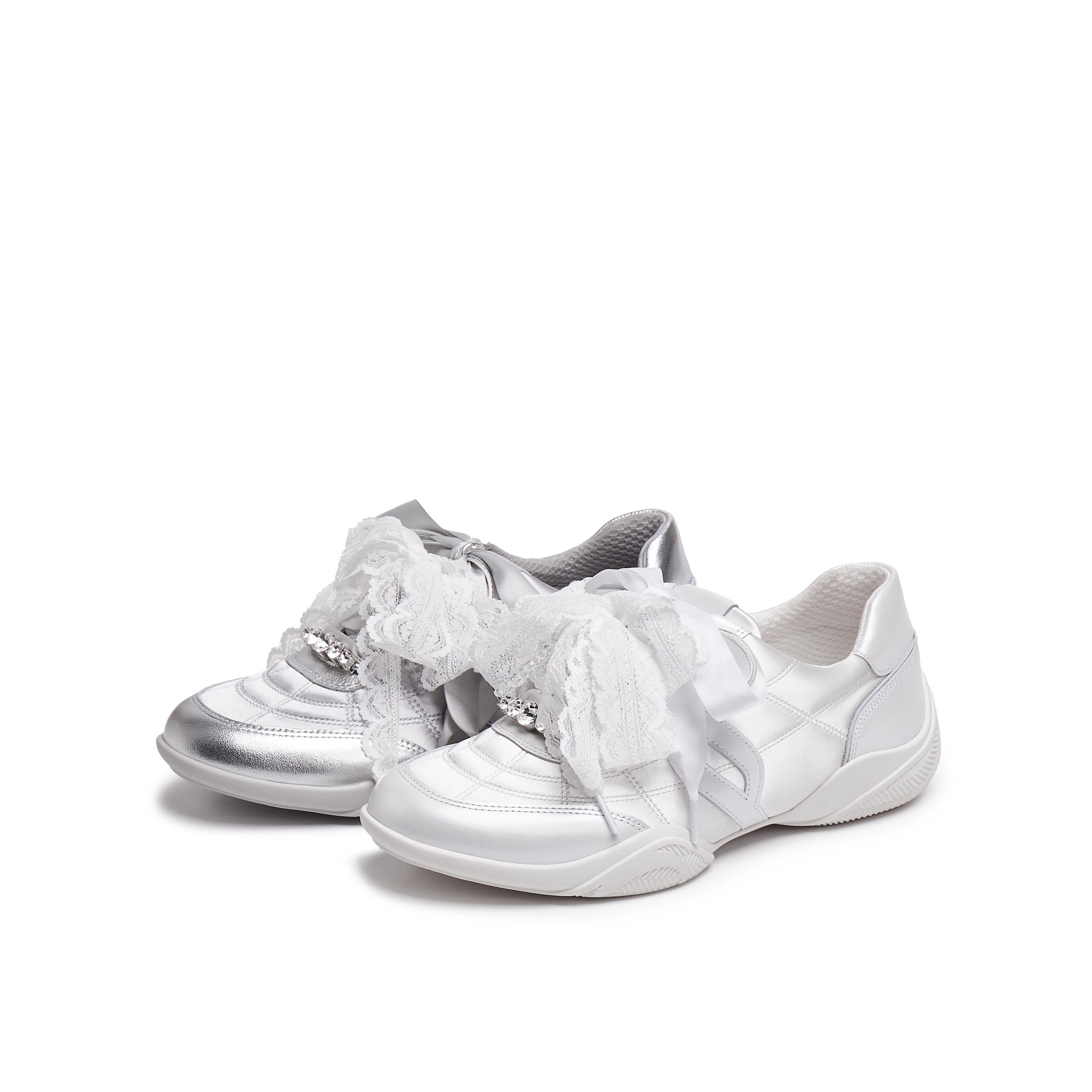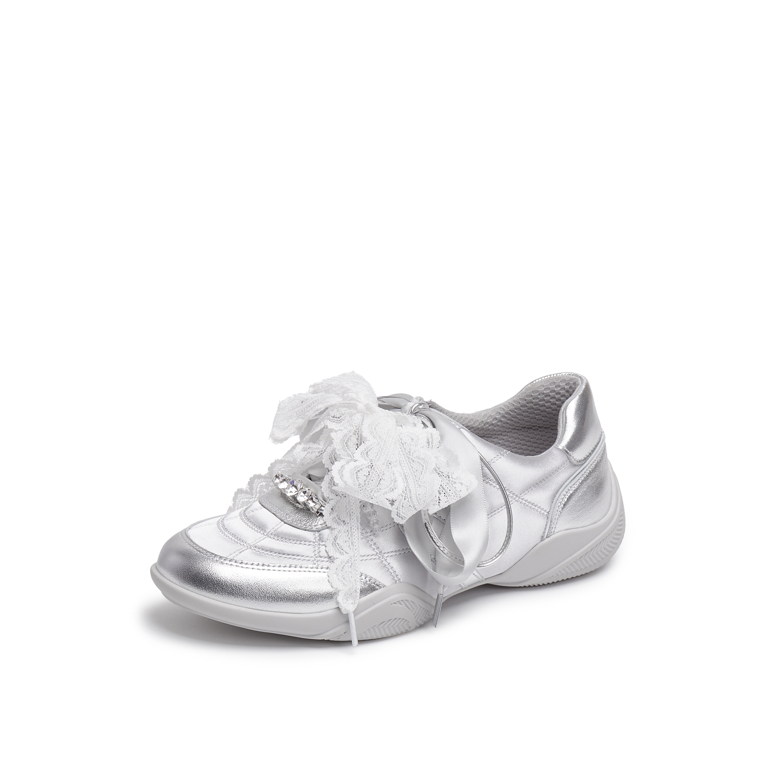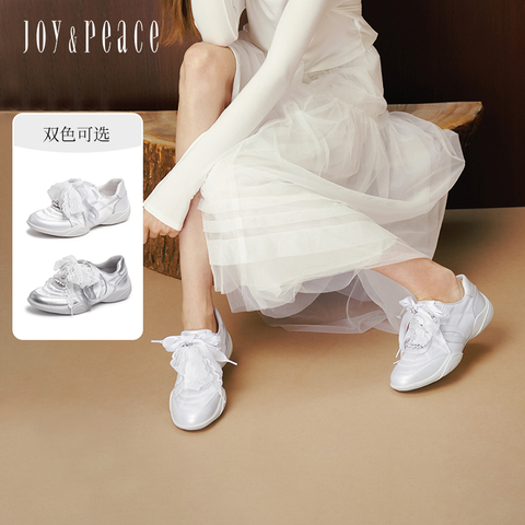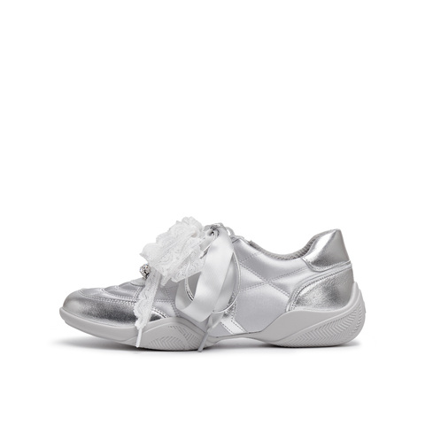 真美诗2025年秋季新款水晶珠串蝴蝶结丝带牛皮运动休闲鞋Y1N04CM5