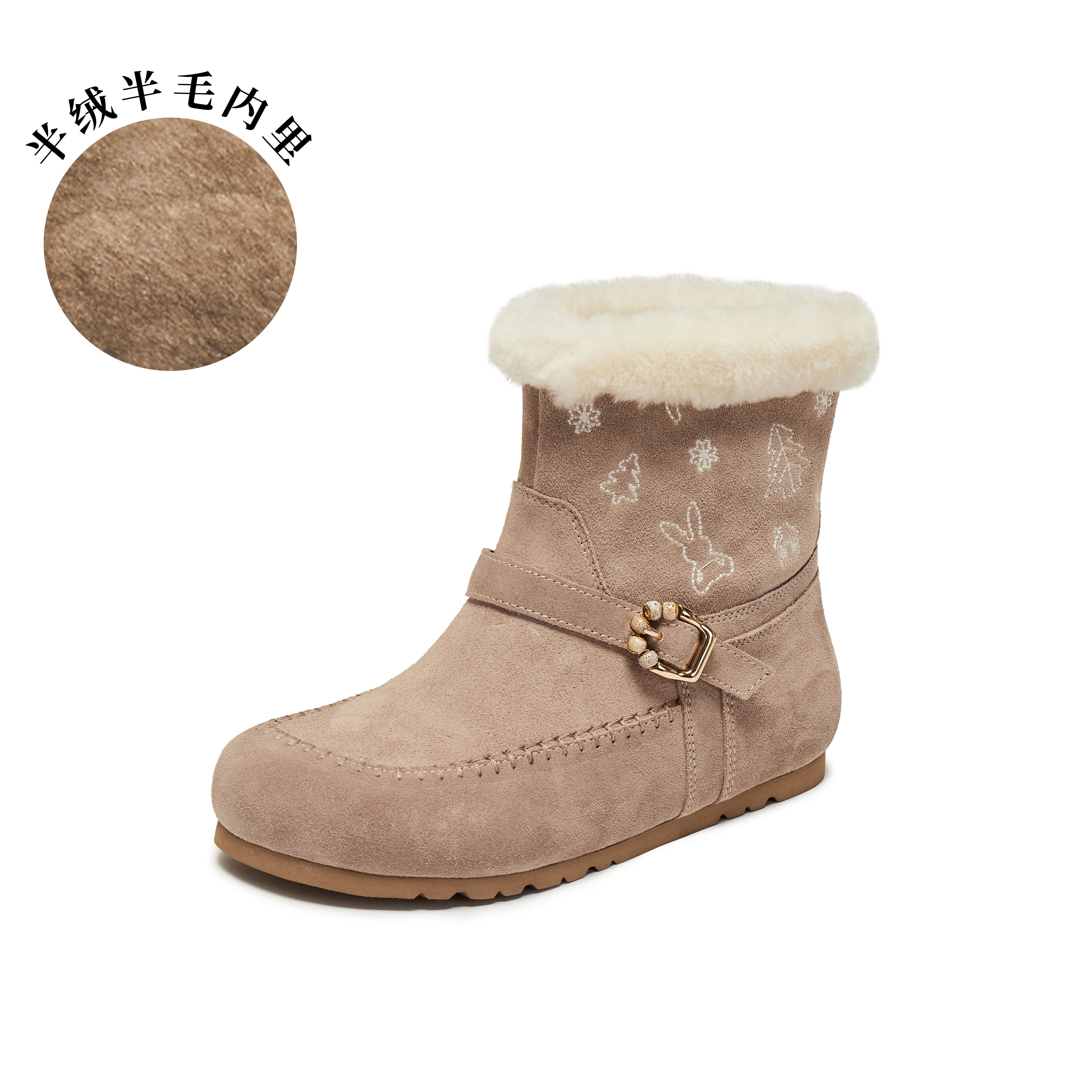 真美诗2025年冬季新款浪漫小众保暖羊毛皮舒适雪地靴Y1Y01DZ5