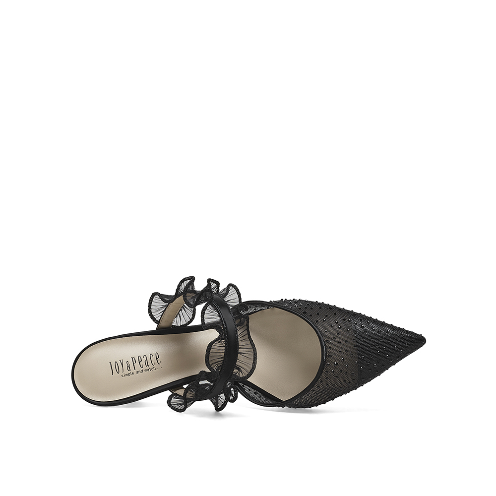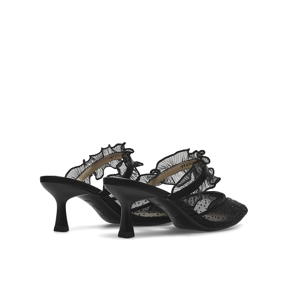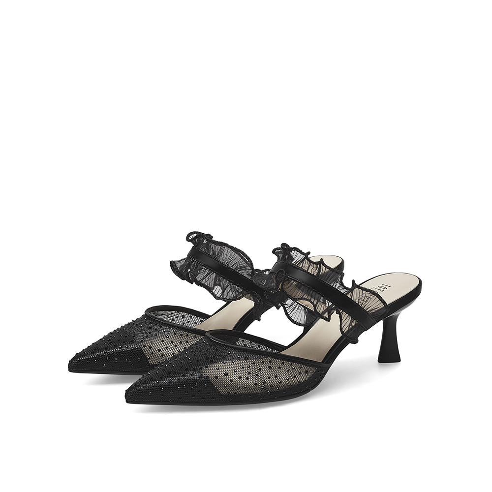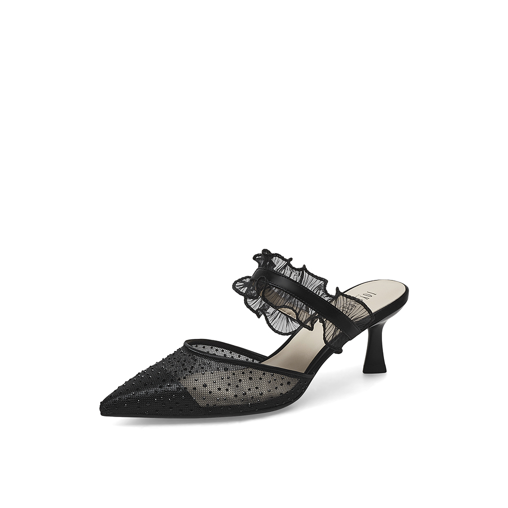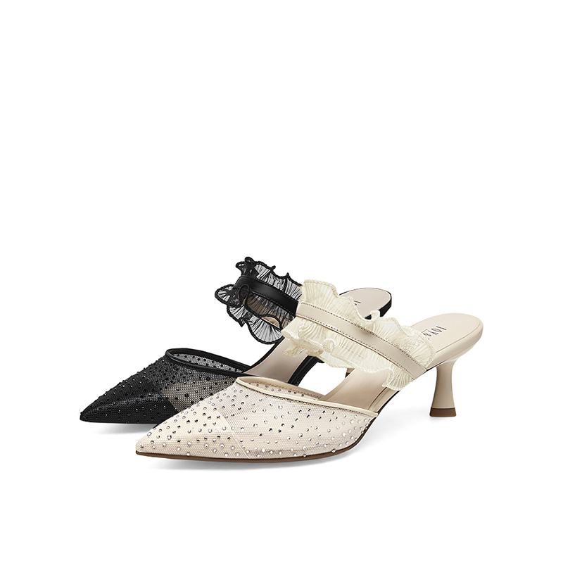 真美诗2023春季新款商场同款甜美蕾丝水钻高跟后空凉鞋YVA16AH3