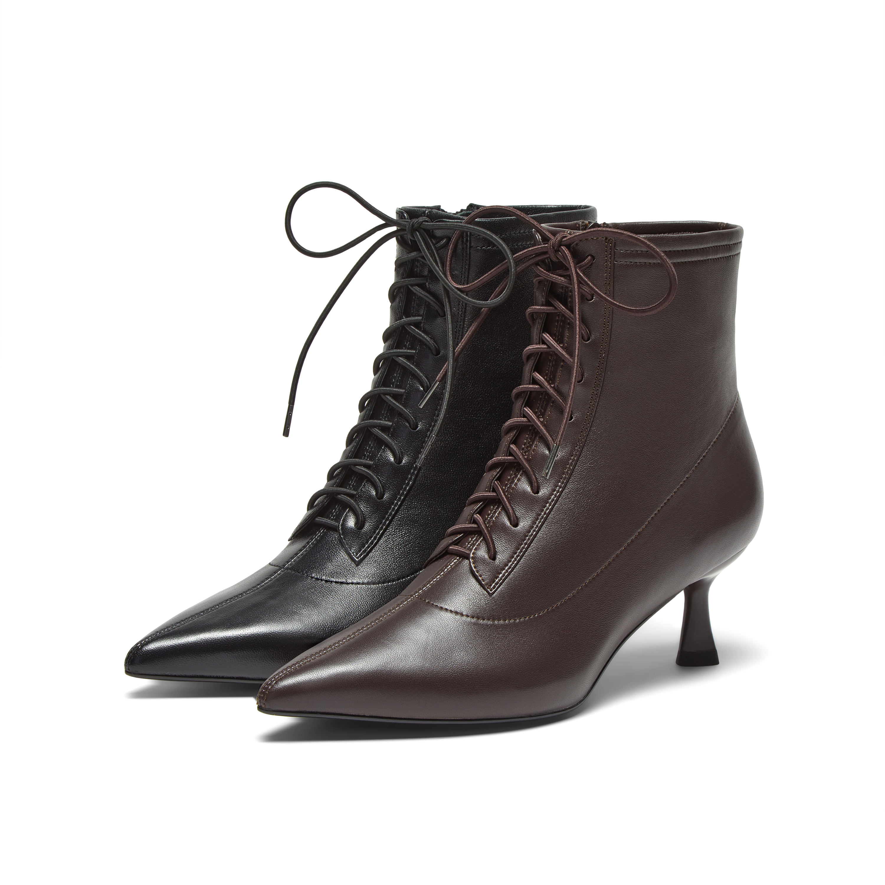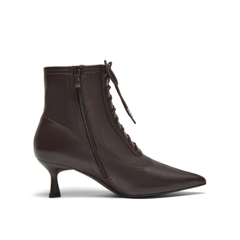 真美诗2024冬季新款细腻羊皮优雅尖头高跟绑带时装靴女YVA46DD4