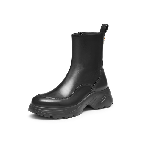 真美诗2024冬季新款金属花扣舒适圆头运动风弹力靴女YYM23DZ4