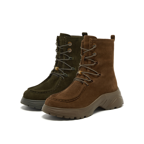 真美诗2025年冬季新款美式复古舒适厚底羊皮革运动靴YYM73DZ5