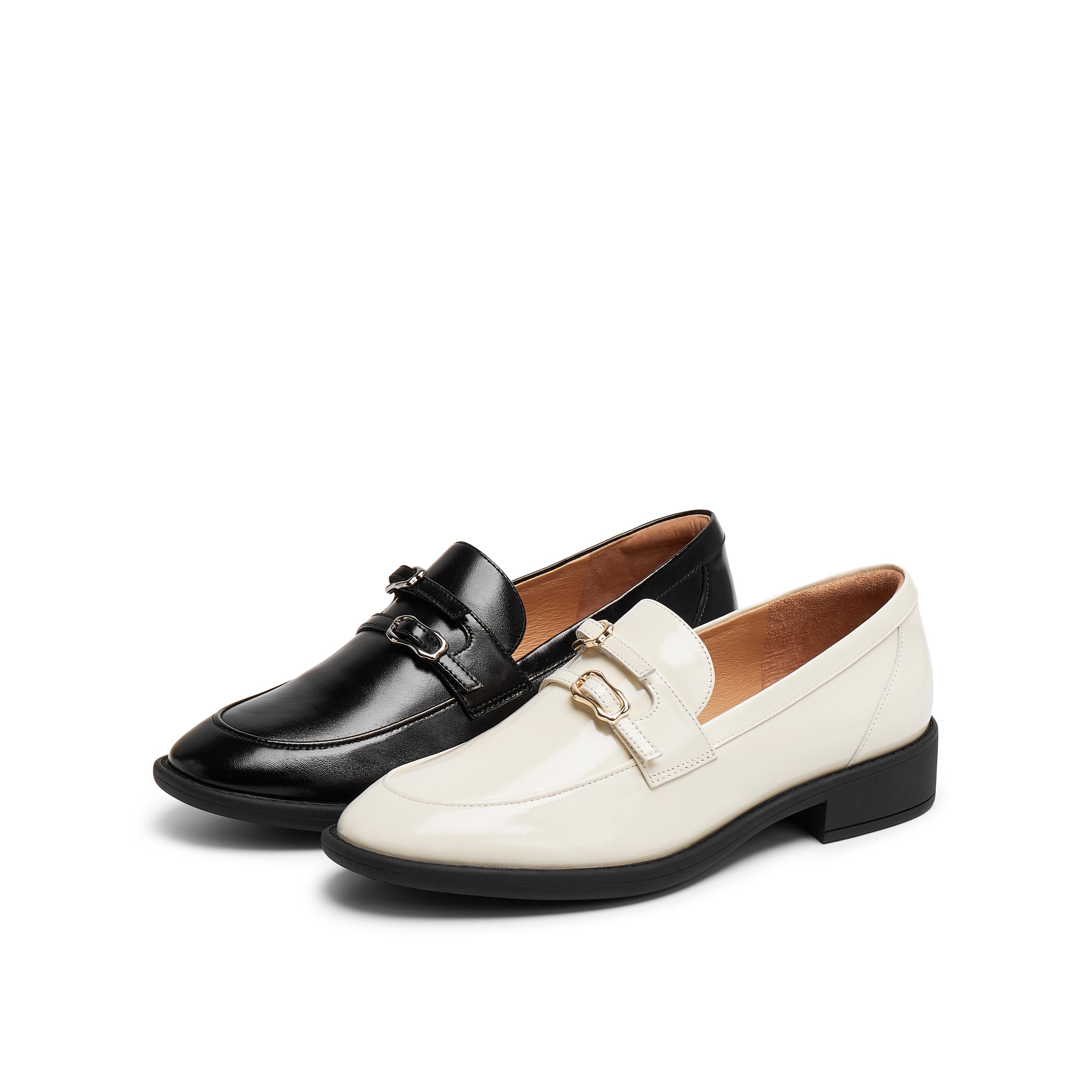 真美诗2025年秋季新款经典原创异形针饰扣牛皮乐福鞋YZK10CA5