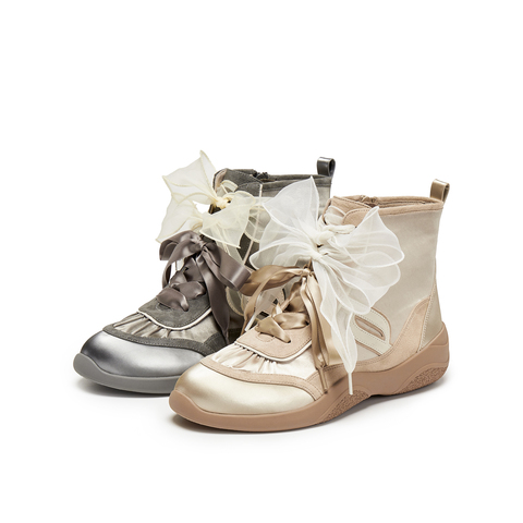 真美诗2025年秋季新款飘逸织带甜美梦幻甜酷运动靴YZM16DD5
