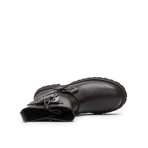 真美诗2024冬季新款光泽牛皮金属搭扣舒适粗跟机车靴女YZR02DZ4