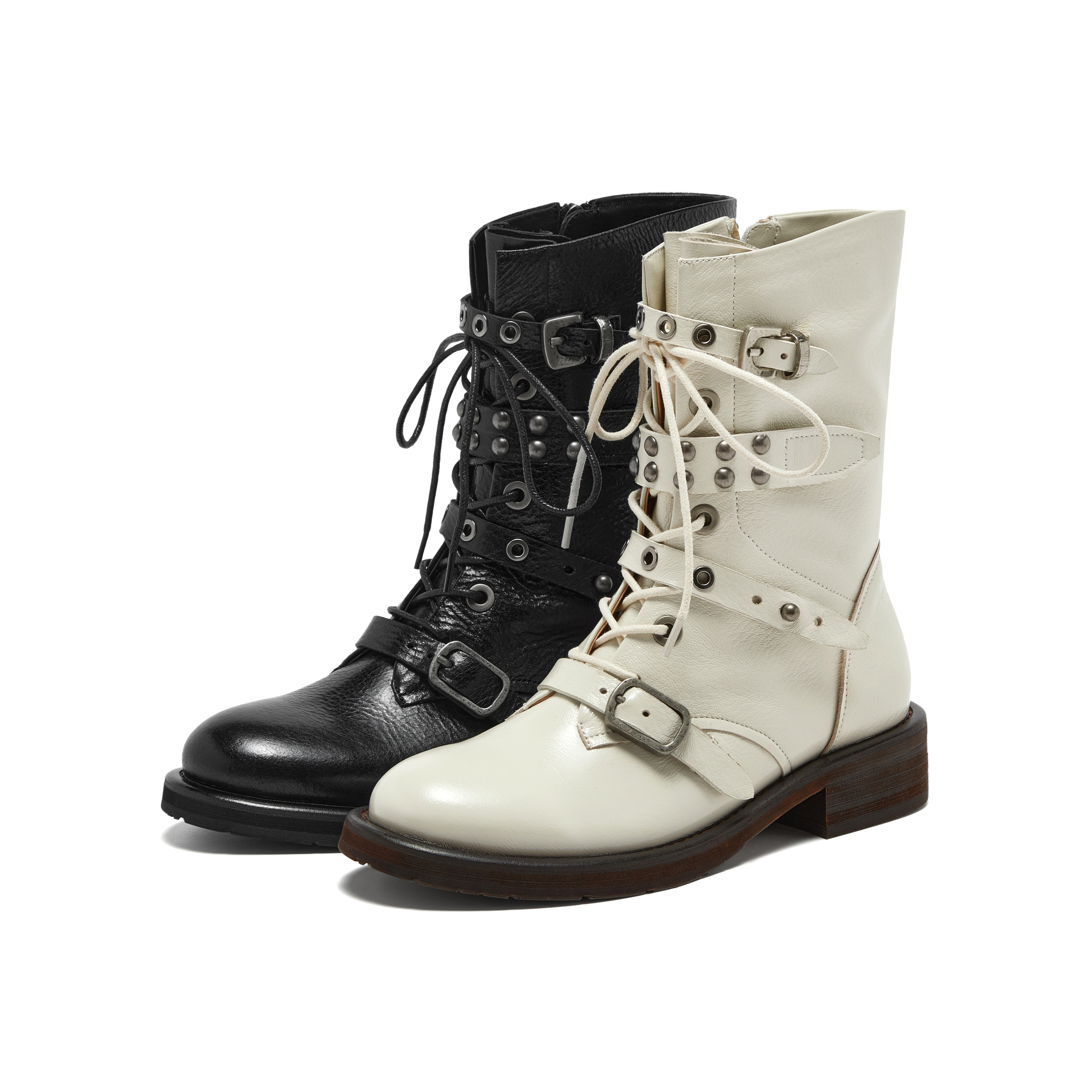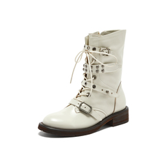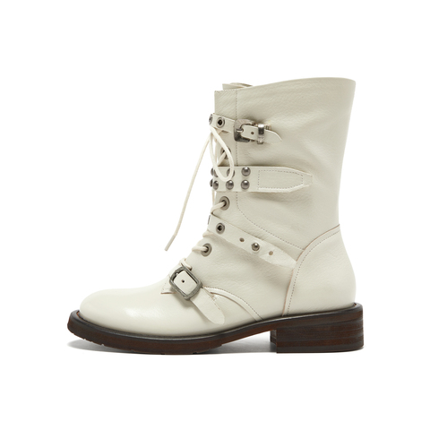 真美诗2025年冬季新款摇滚朋克风荔枝纹理羊皮革马丁靴Z238PDZ5