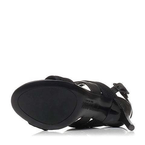 JoyPeace真美诗夏季专柜同款黑色镂空细跟女皮凉鞋ZE522BL6