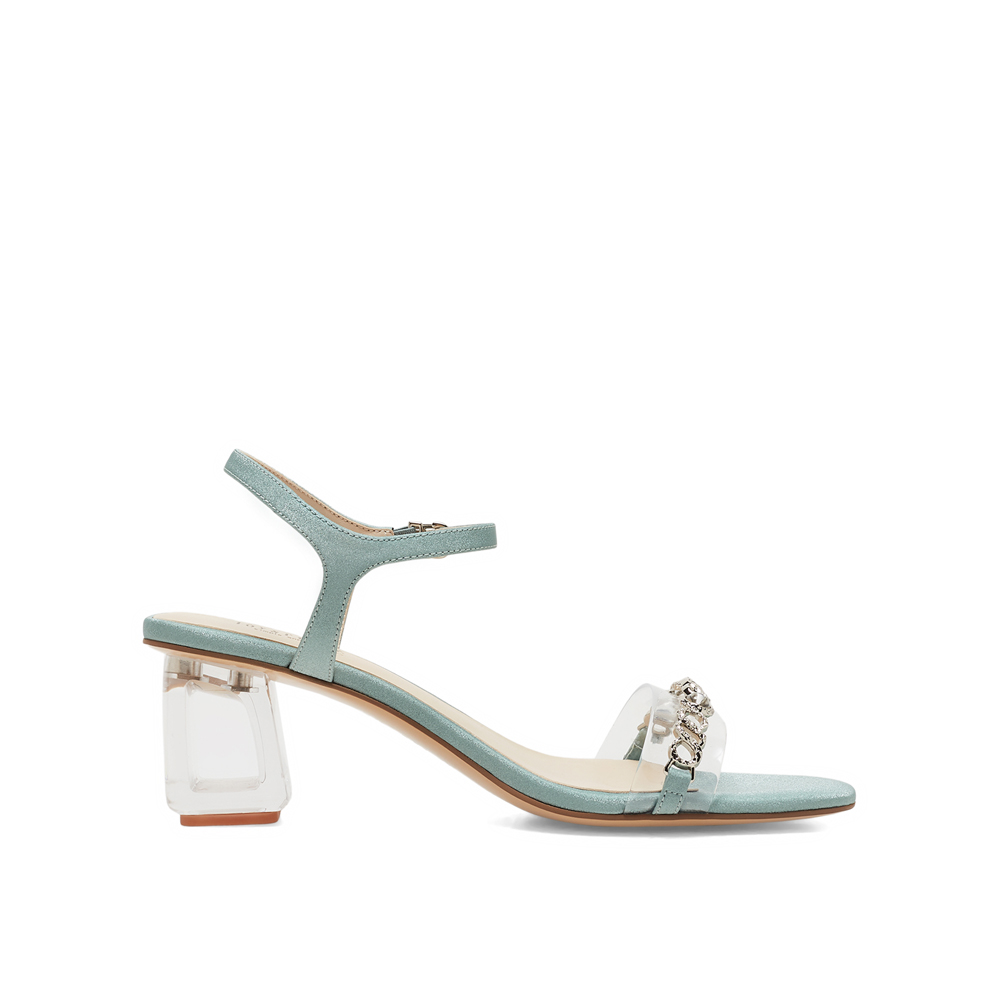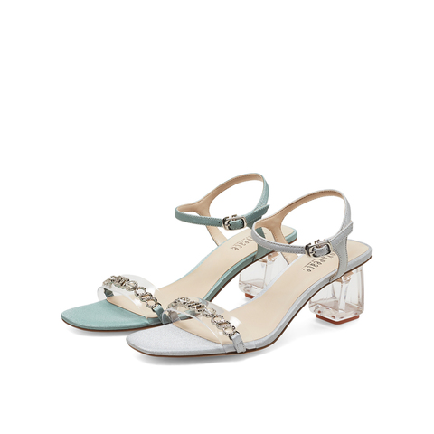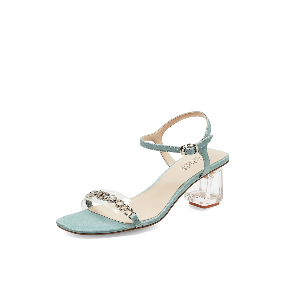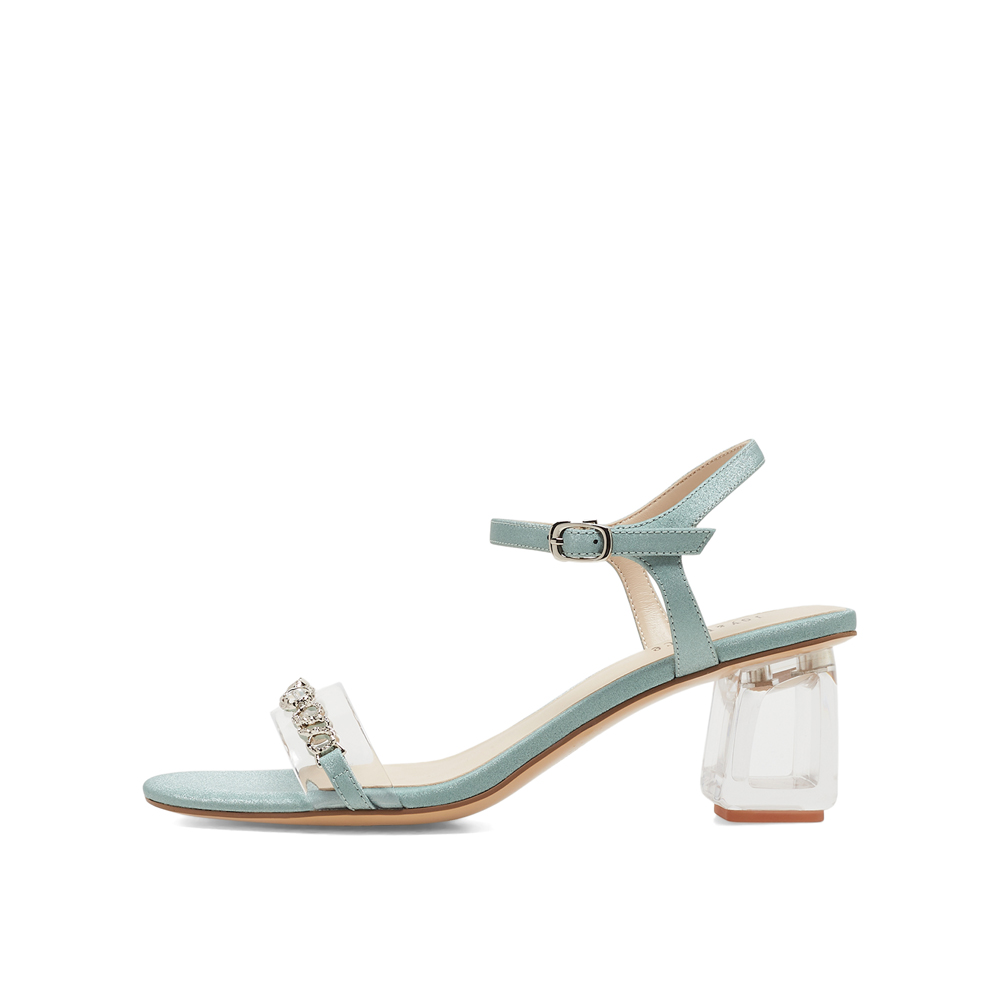 真美诗2023夏季新款商场同款透明粗跟一字带凉鞋ZI920BL3