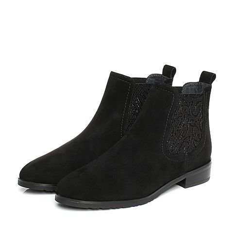 Joy&Peace/真美诗冬季时尚简约羊绒皮女靴子方跟中跟短靴ZN524DD7