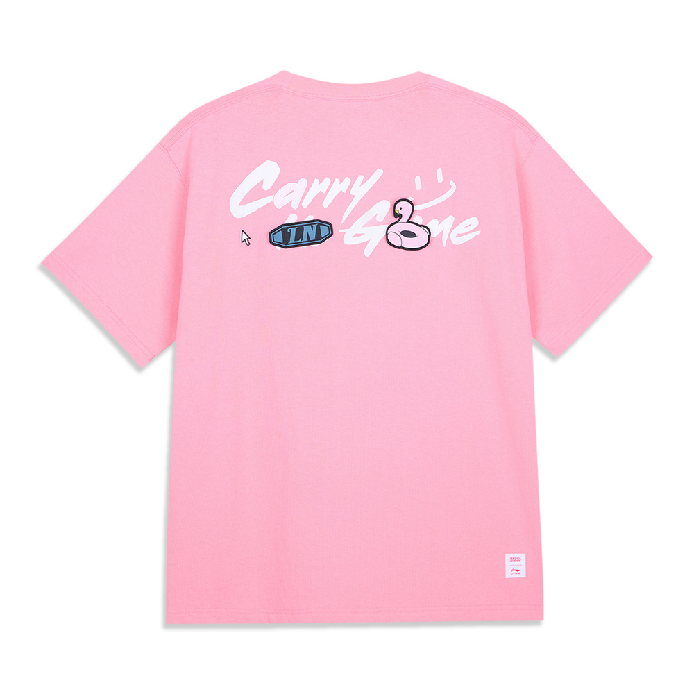 LI-NING李宁2025中性短袖文化衫针织无领短TAHSV379-2
