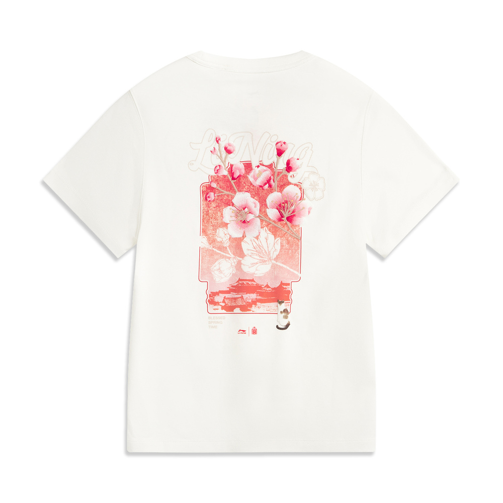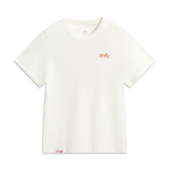 LI-NING李宁2025女子短袖文化衫针织无领短TAHSV540-1