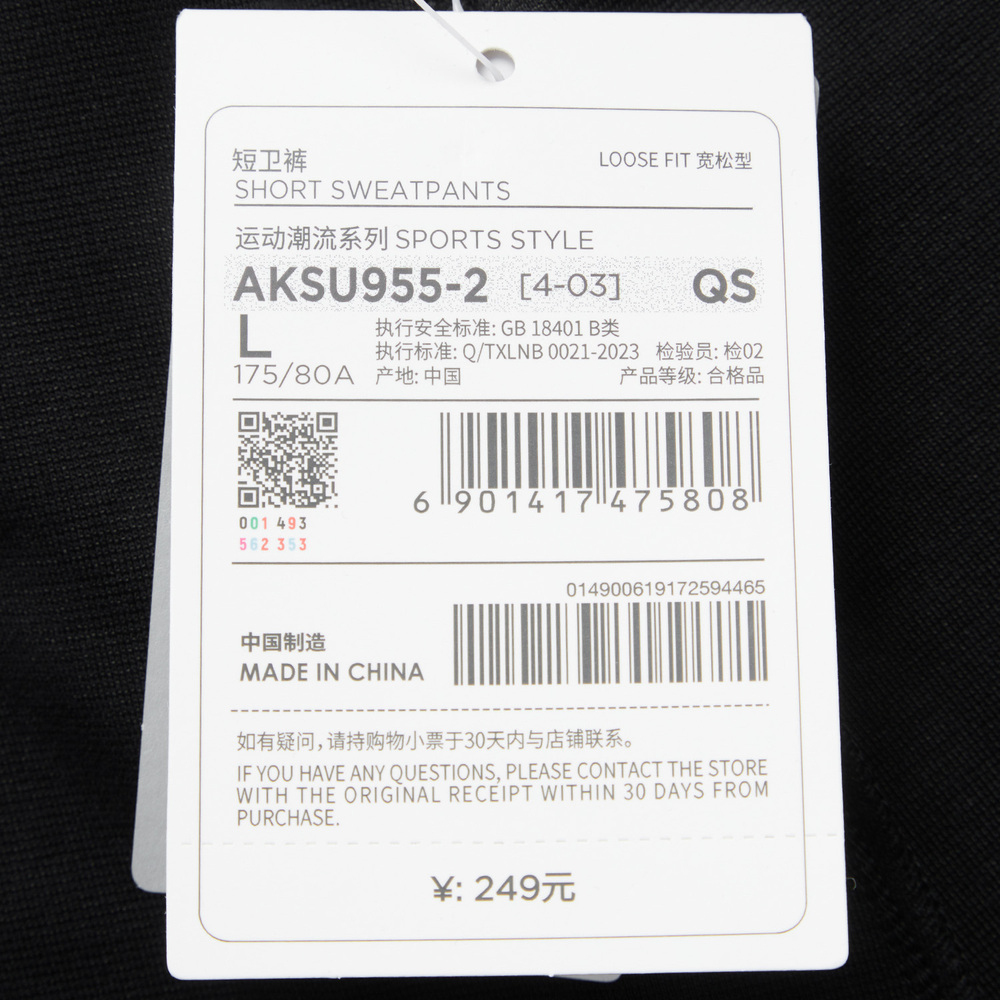LI-NING李宁2024中性短卫裤AKSU955-2