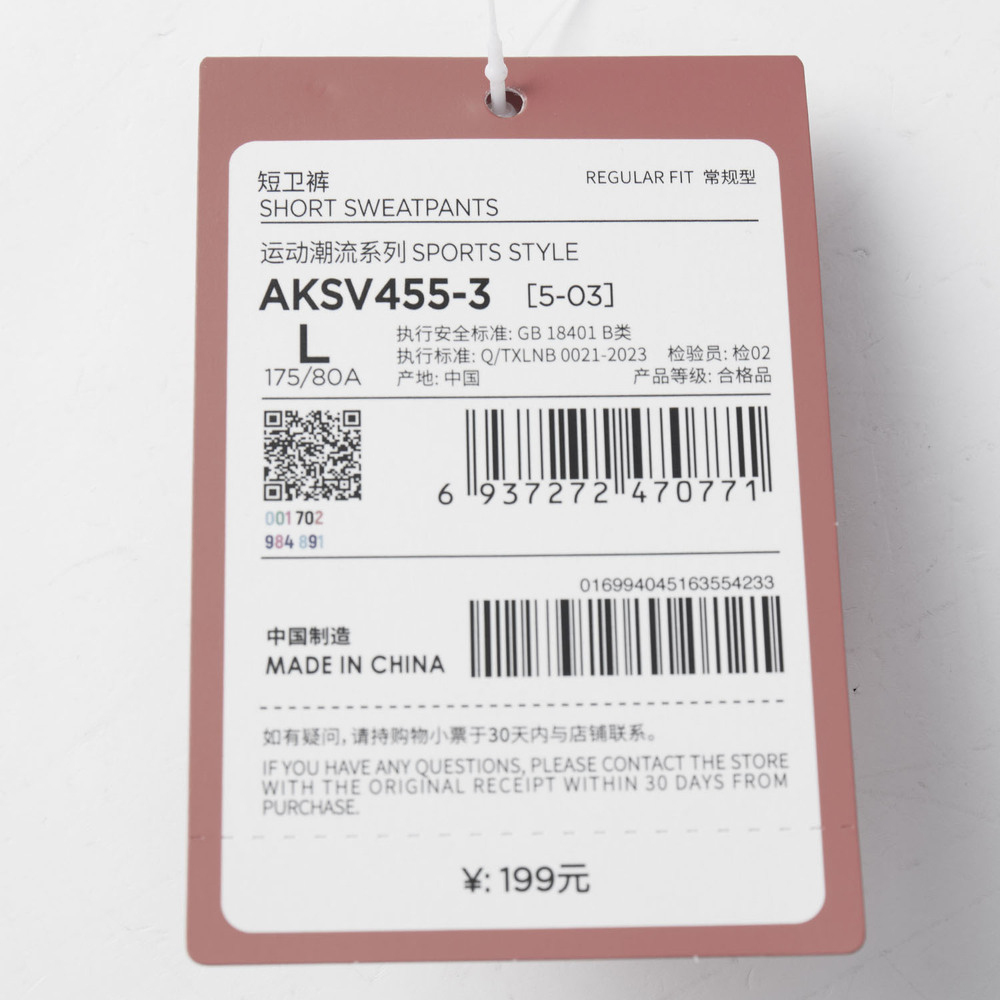 • 运动款式:短裤