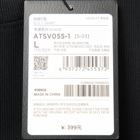 • 运动款式:短袖T恤