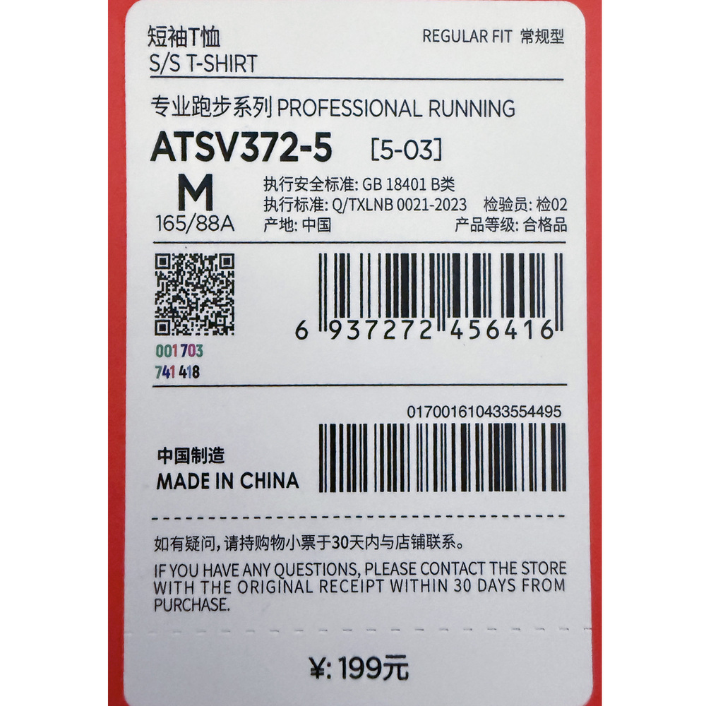 • 运动款式:短袖T恤