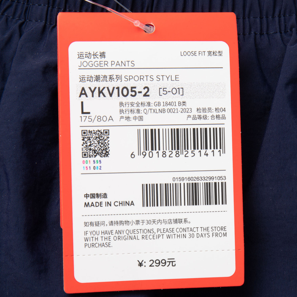 LI-NING李宁2024男子运动长裤梭织长裤AYKV105-2