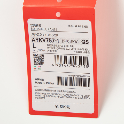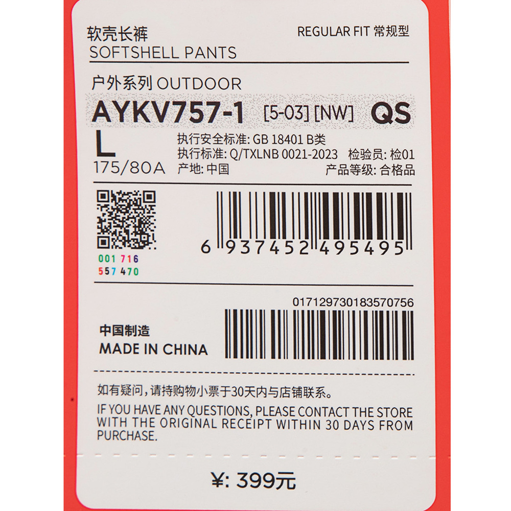 LI-NING李宁2025男子软壳长裤梭织长裤AYKV757-1