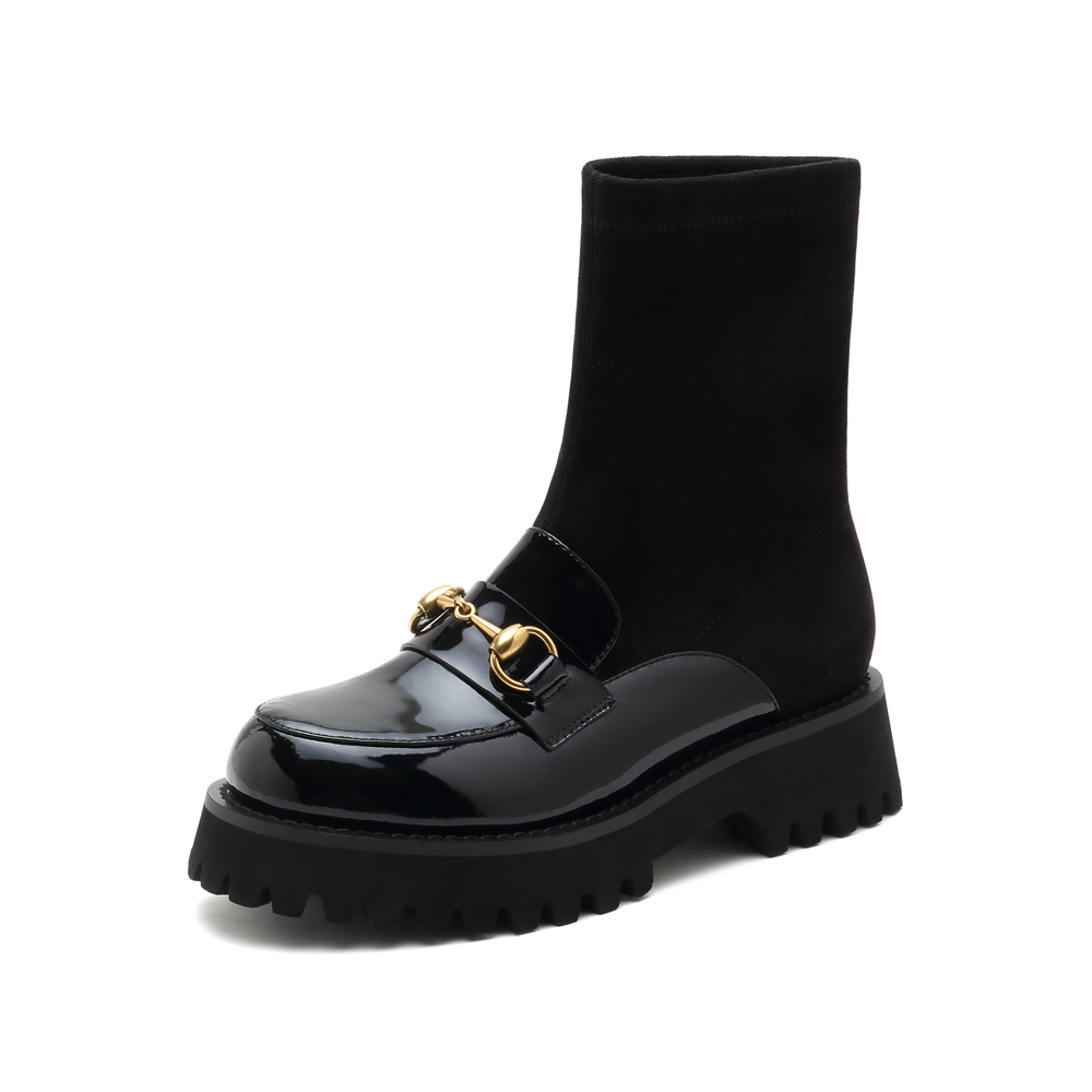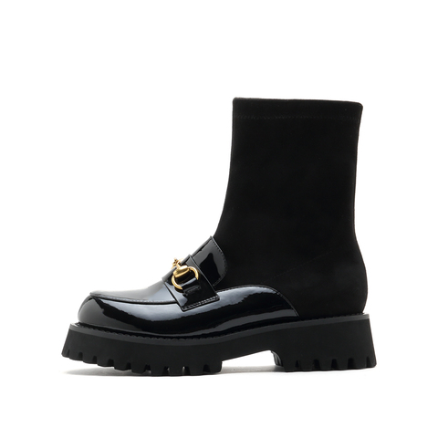 millie's/妙丽2021冬季新款牛皮英伦风弹力袜靴女短靴7019ZDD1
