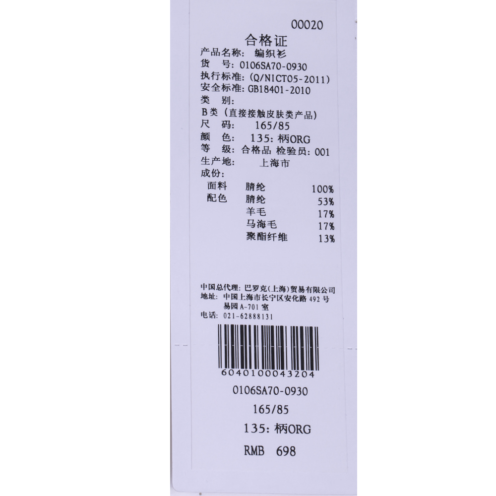 ¥698品牌商建议零售价或牌价。