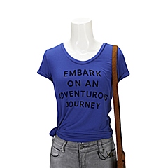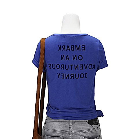 MOUSSY 专柜同款 女款蓝色椭圆领字母图案短袖T恤0106SG90-2200
