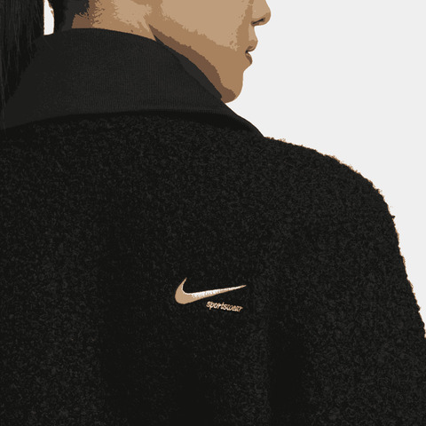 NIKE耐克2023女子AS W NSW CLCCTN SHRPA HZ MBRS人造毛绒套头衫FB8786-010