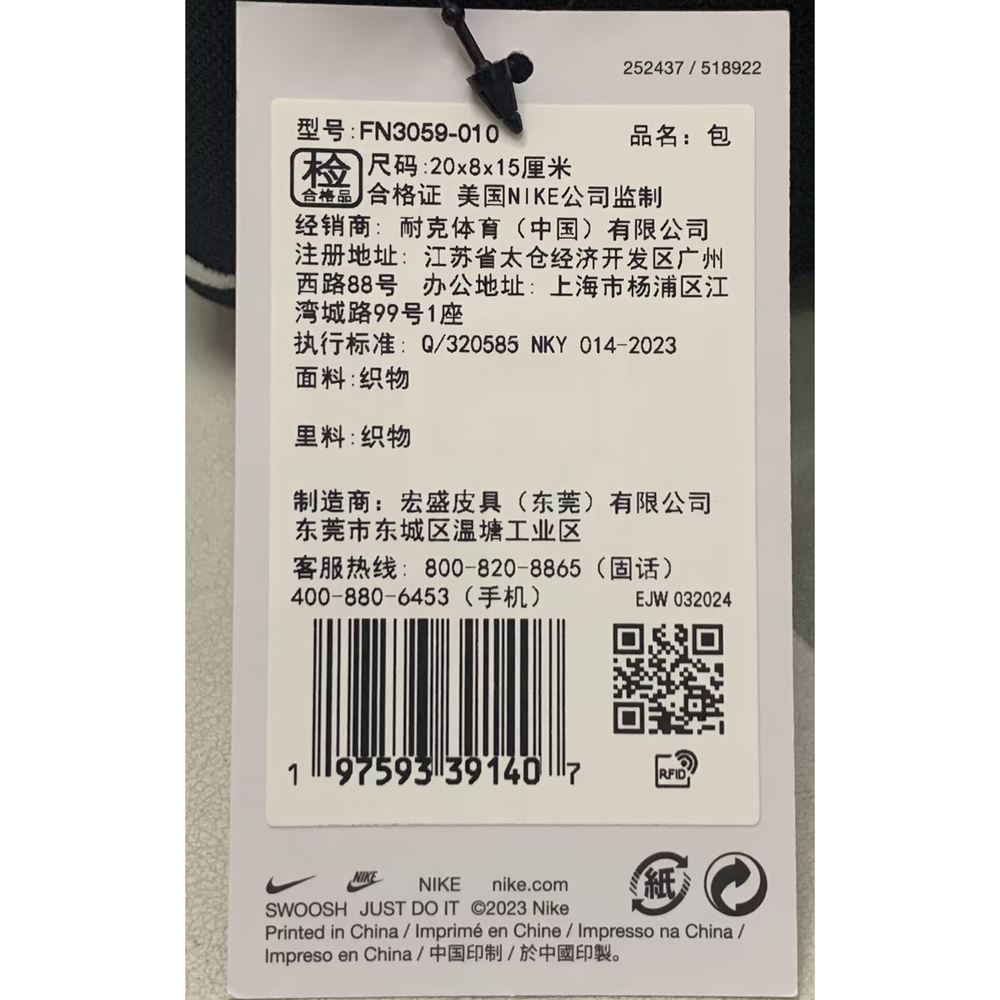 NIKE耐克2024女子NK MINI SHOEBOX CROSSBODY斜挎包FN3059-010