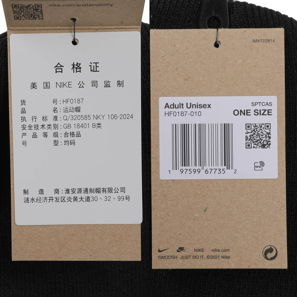 NIKE耐克2025中性U NK PEAK BEANIE TC SWSH F24 L针织帽HF0187-010