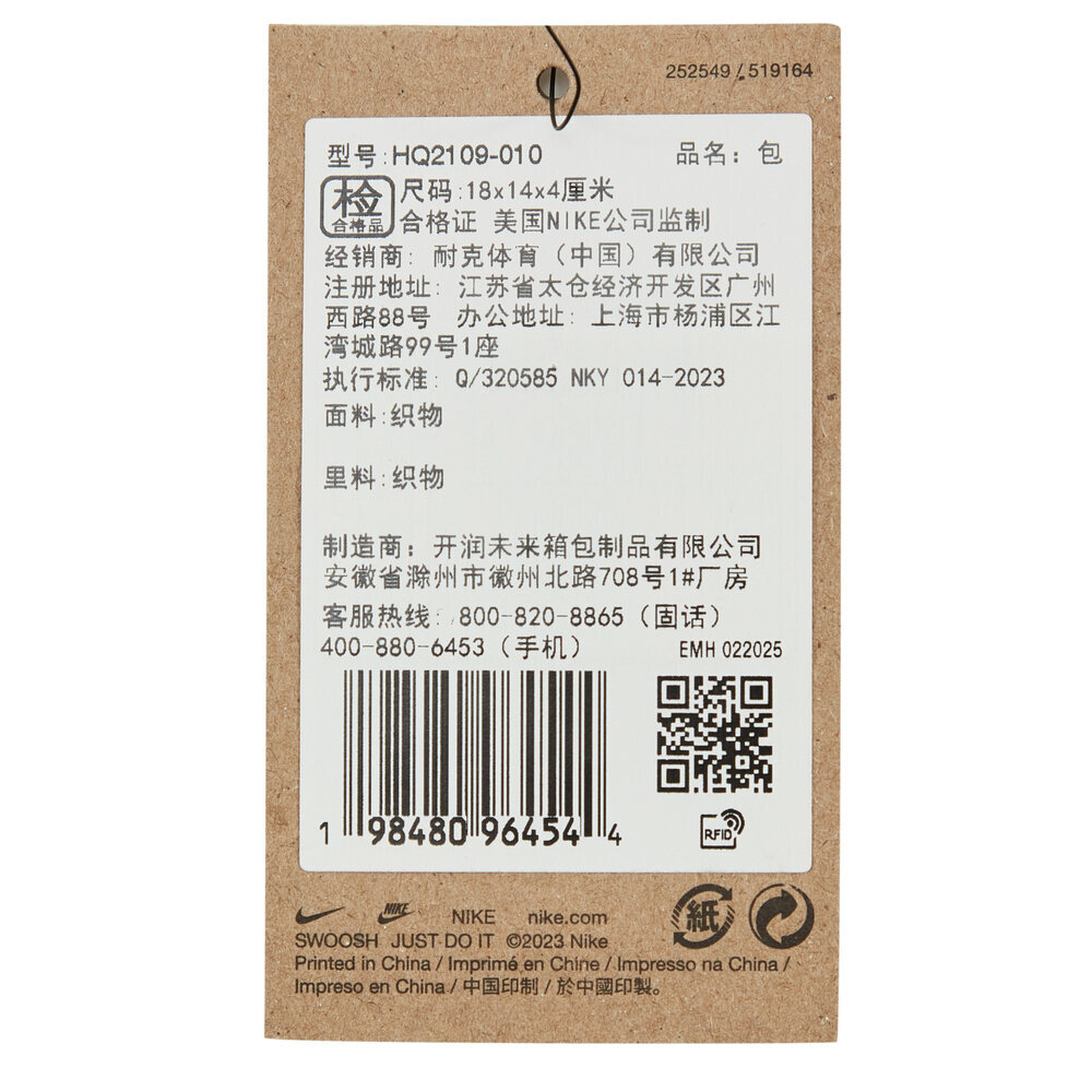 NIKE耐克2025女大童Y NK CROSSBODY - MTRL GFX斜背包HQ2109-010