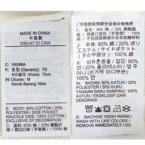 尺码 XS S M L XL