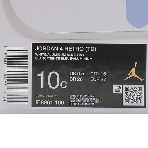 NIKE耐克2025女小童Jordan 4 Retro TD乔丹IB8961-100