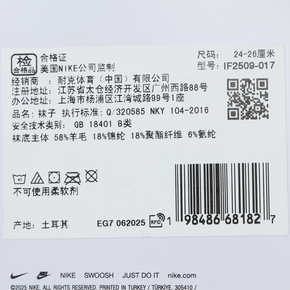 NIKE耐克2025中性U NK WOOL RUN CREW 1PR - 200中袜IF2509-017
