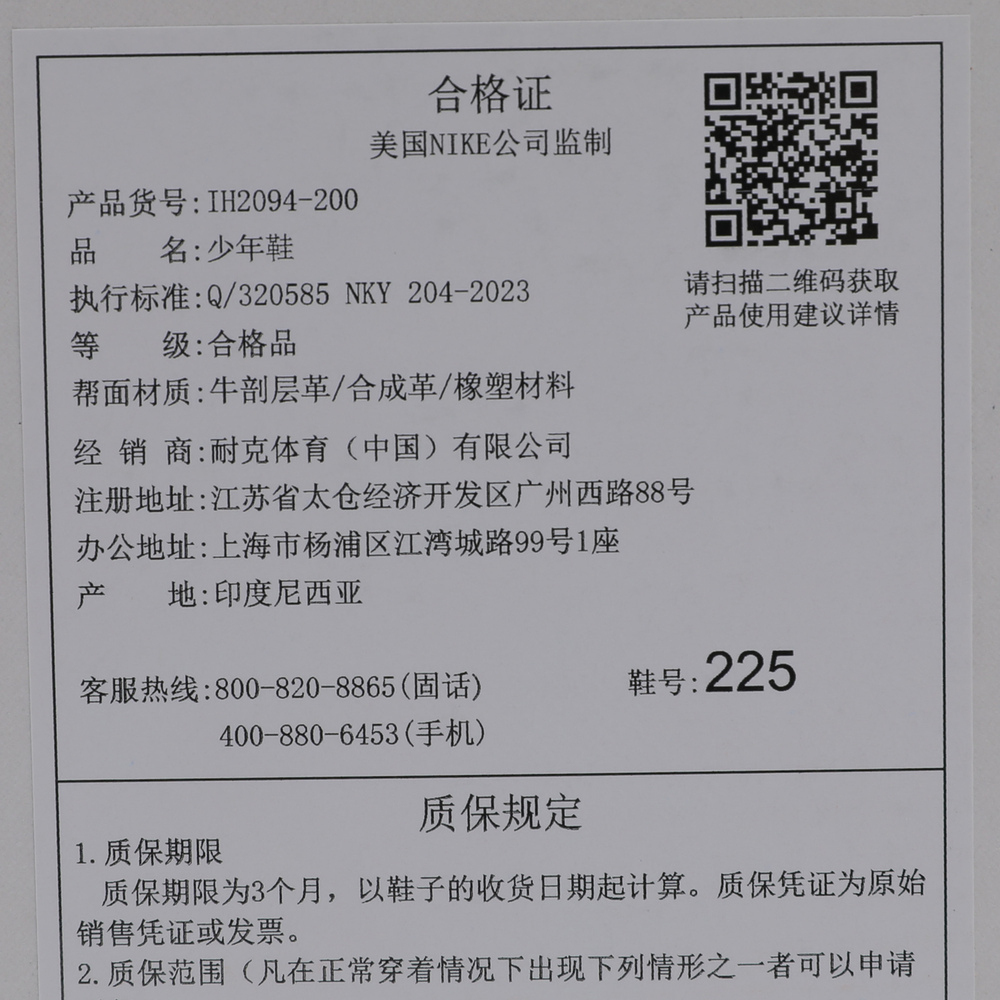 尺码 :