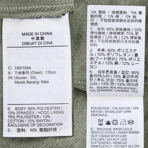 上装身高/胸围 160/80A 165/84A 170/88A 175/92A 180/96A 185/100A 190/104A 195/108A