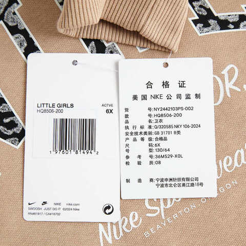 NIKE耐克2024女小童套头无帽卫衣针织无帽卫衣NY2442103PS-002