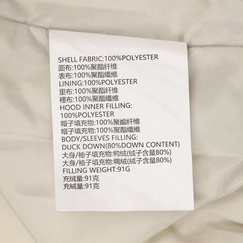 • 填充物:鸭绒