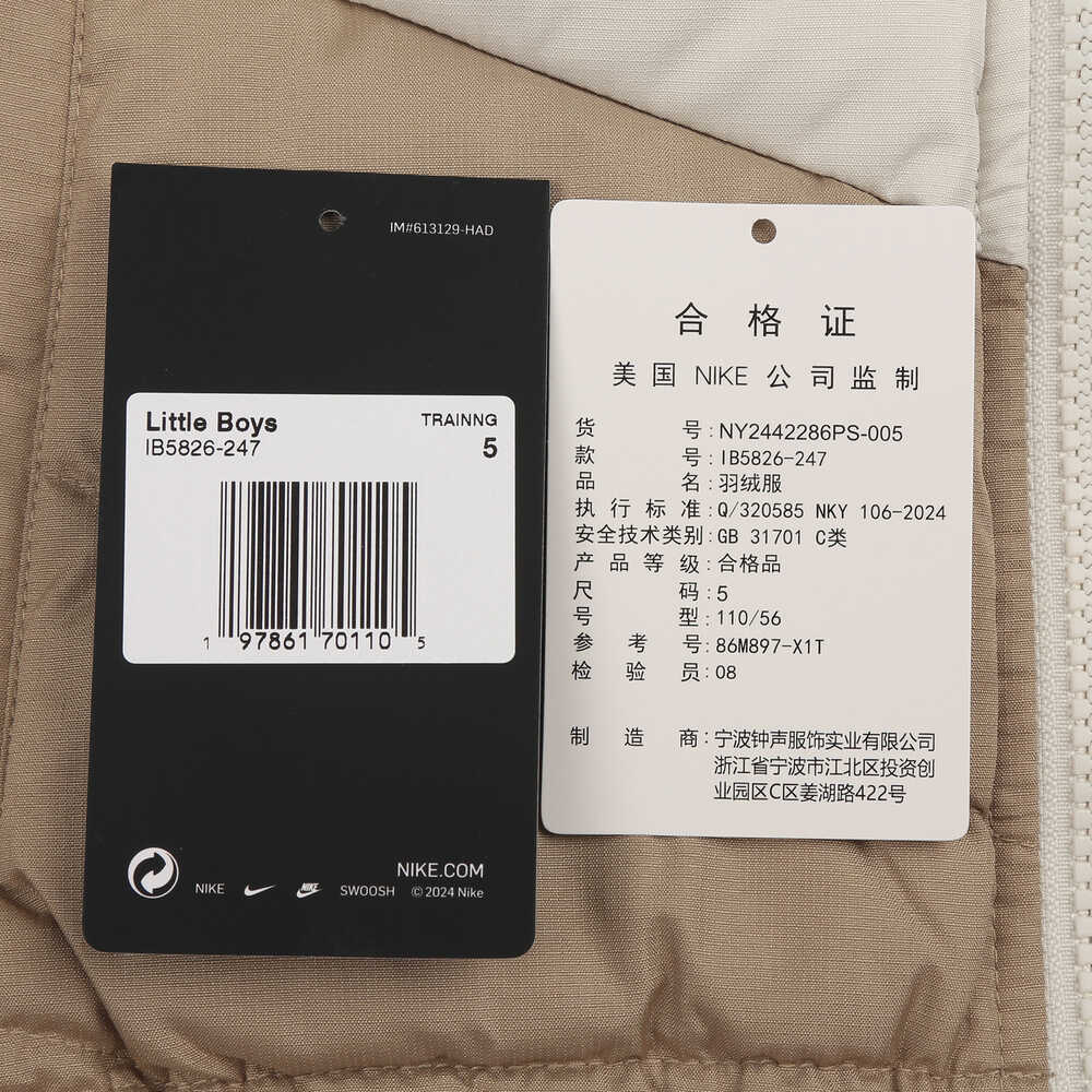 NIKE耐克2024小童短款羽绒服薄羽绒服-短NY2442286PS-005