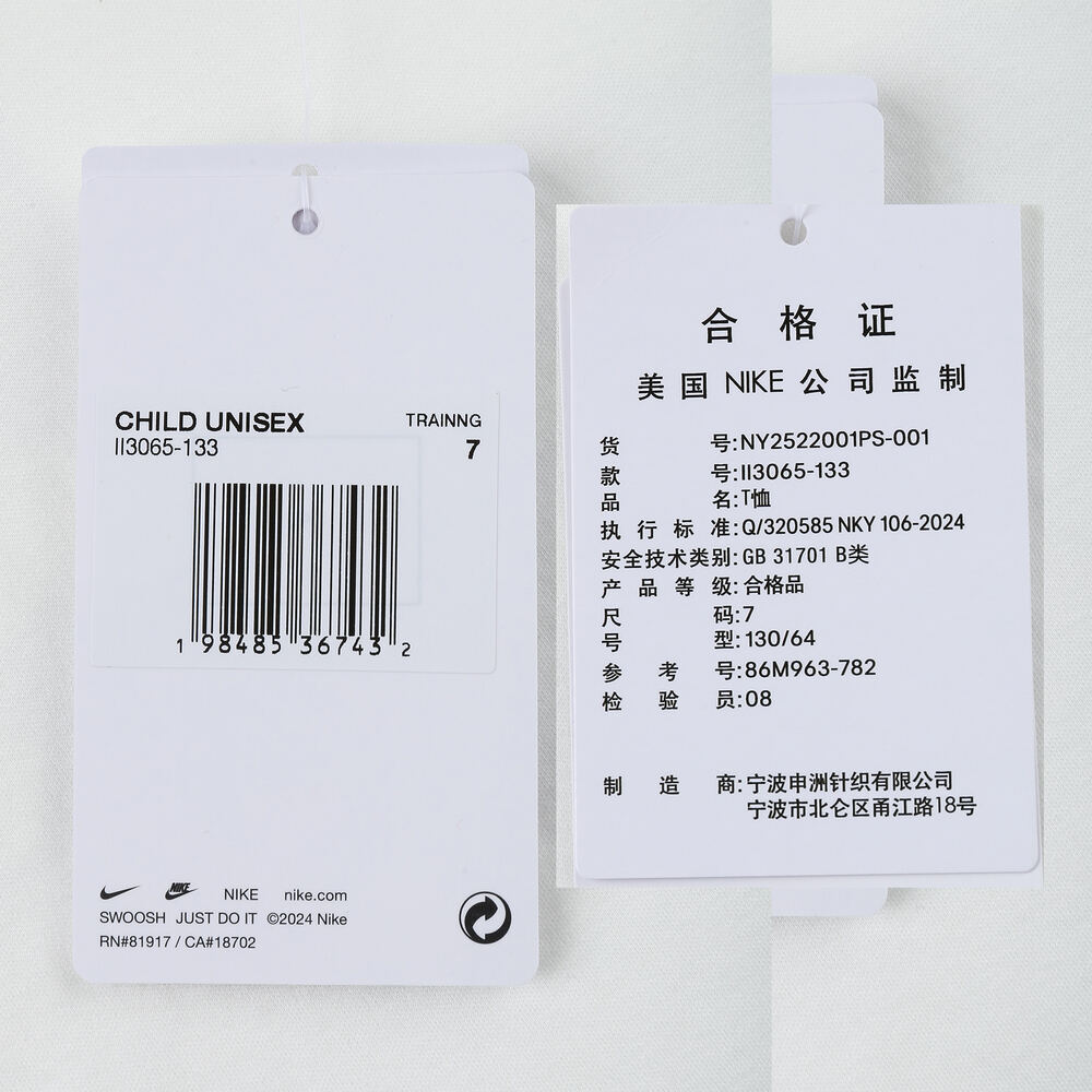 NIKE耐克2025小童短袖T恤针织无领短TNY2522001PS-001