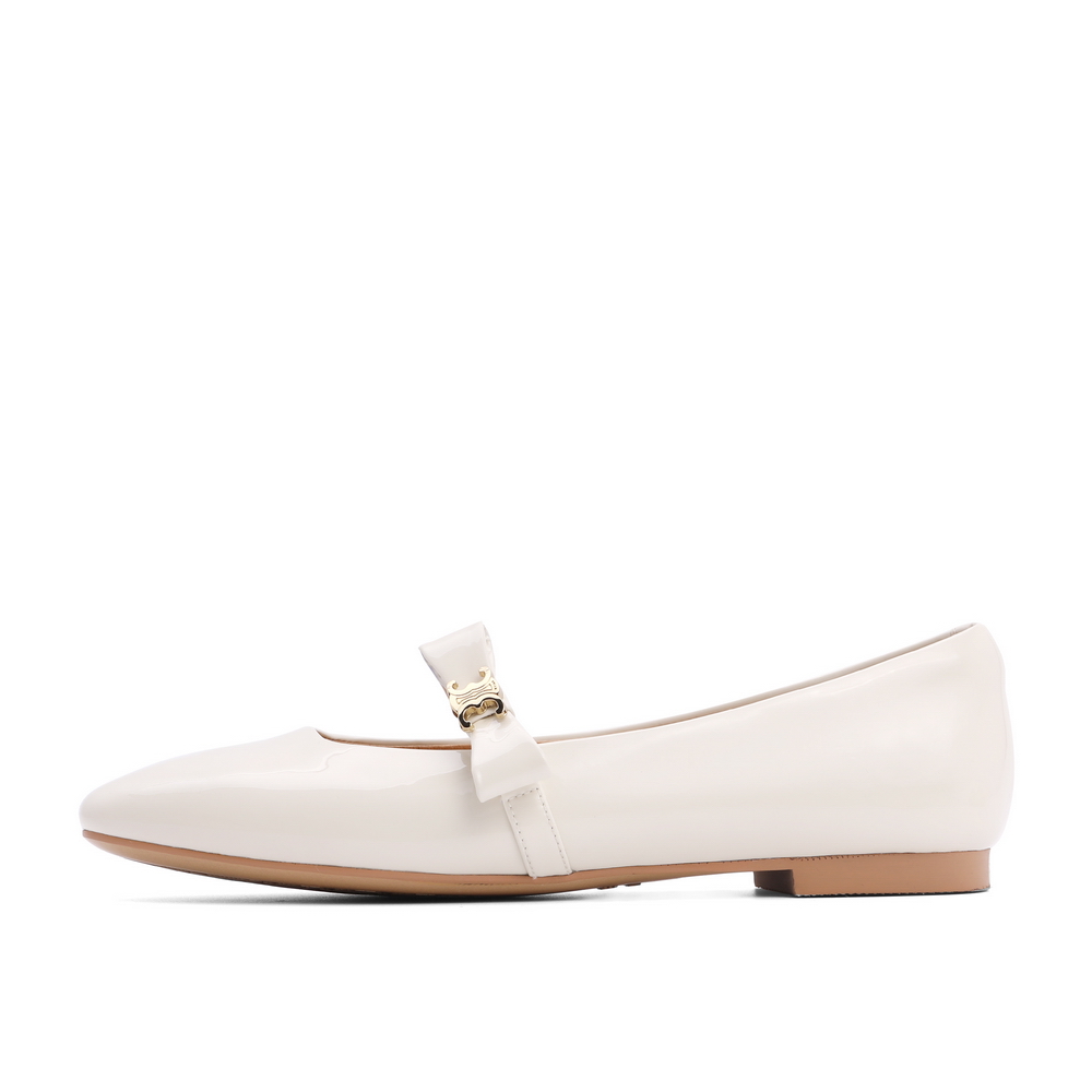 百丽方头玛丽珍鞋女2021秋新商场同款牛皮甜美蝴蝶结单鞋W8M1DCQ1
