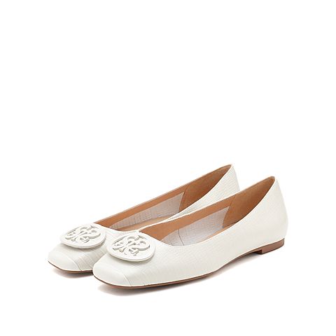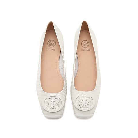 思加图2021秋季新款通勤方头低跟浅口鞋单鞋平底鞋女皮鞋9UR19CQ1