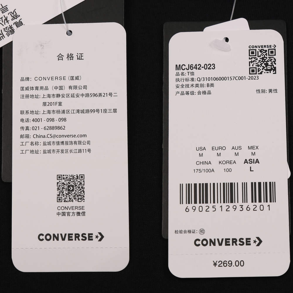 converse匡威2025男子男子-针织无领短T-黑针织无领短TMCJ642-023