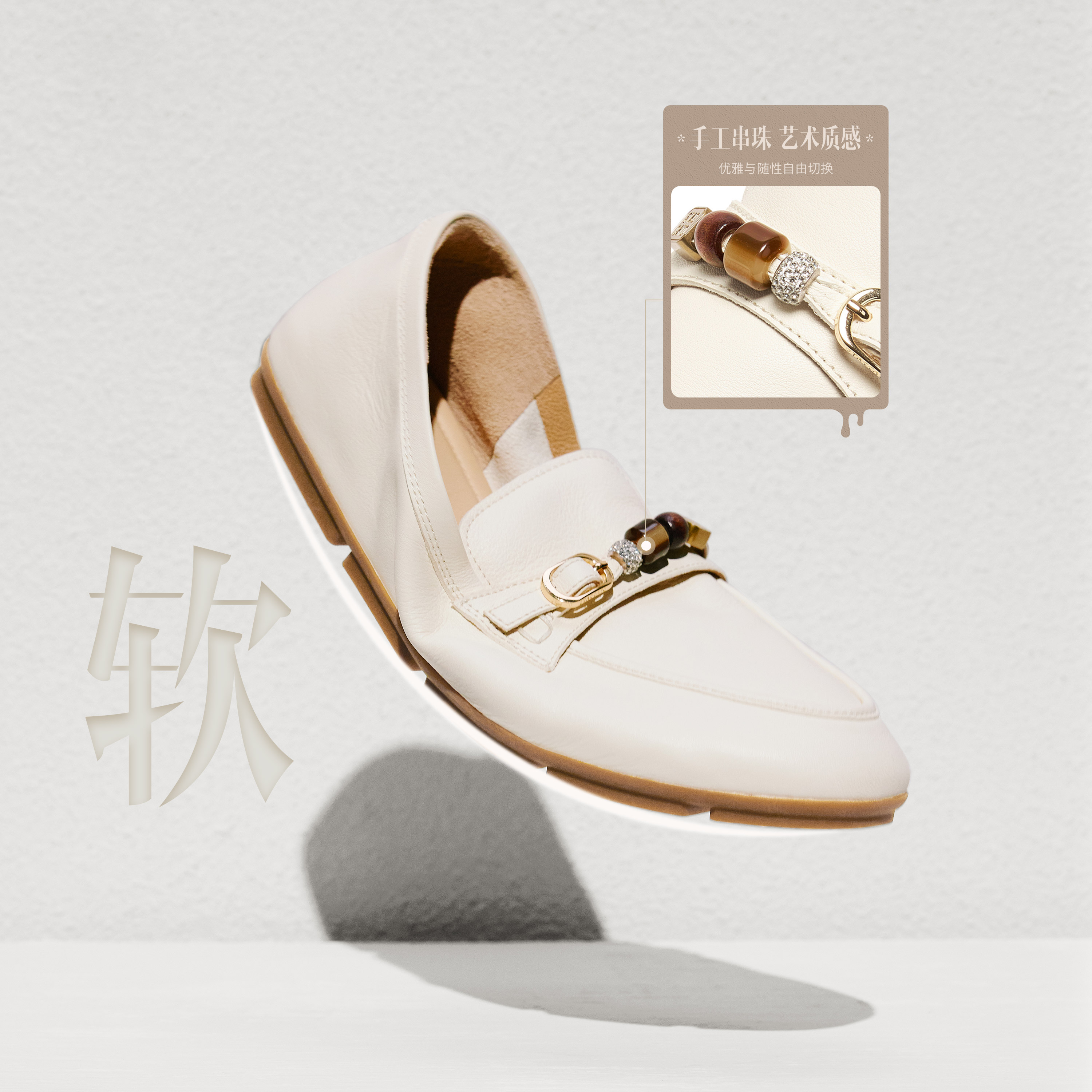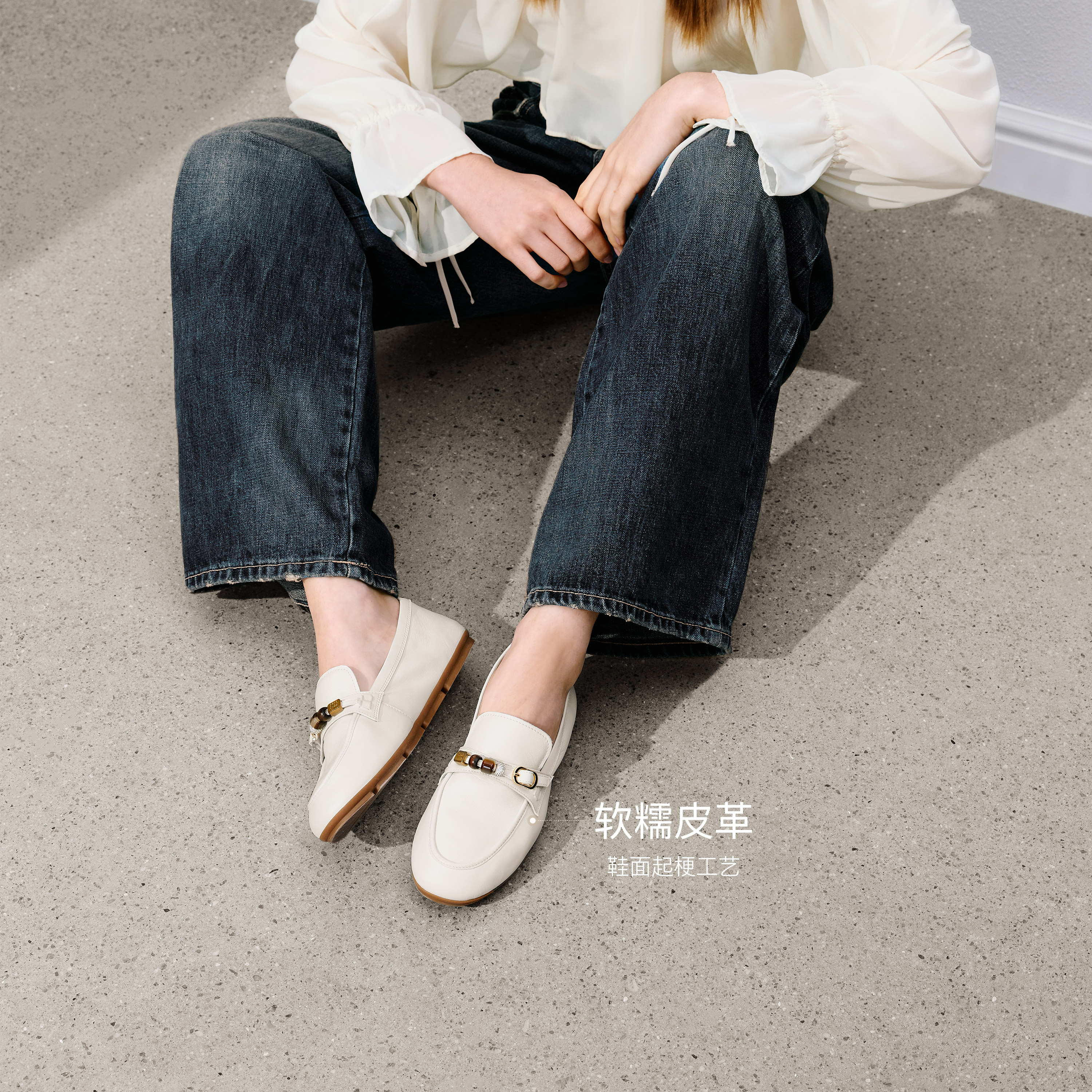 思加图2026春季新款豆豆奶油乐福鞋奶油鞋一脚蹬单鞋女鞋EJR03AA6
