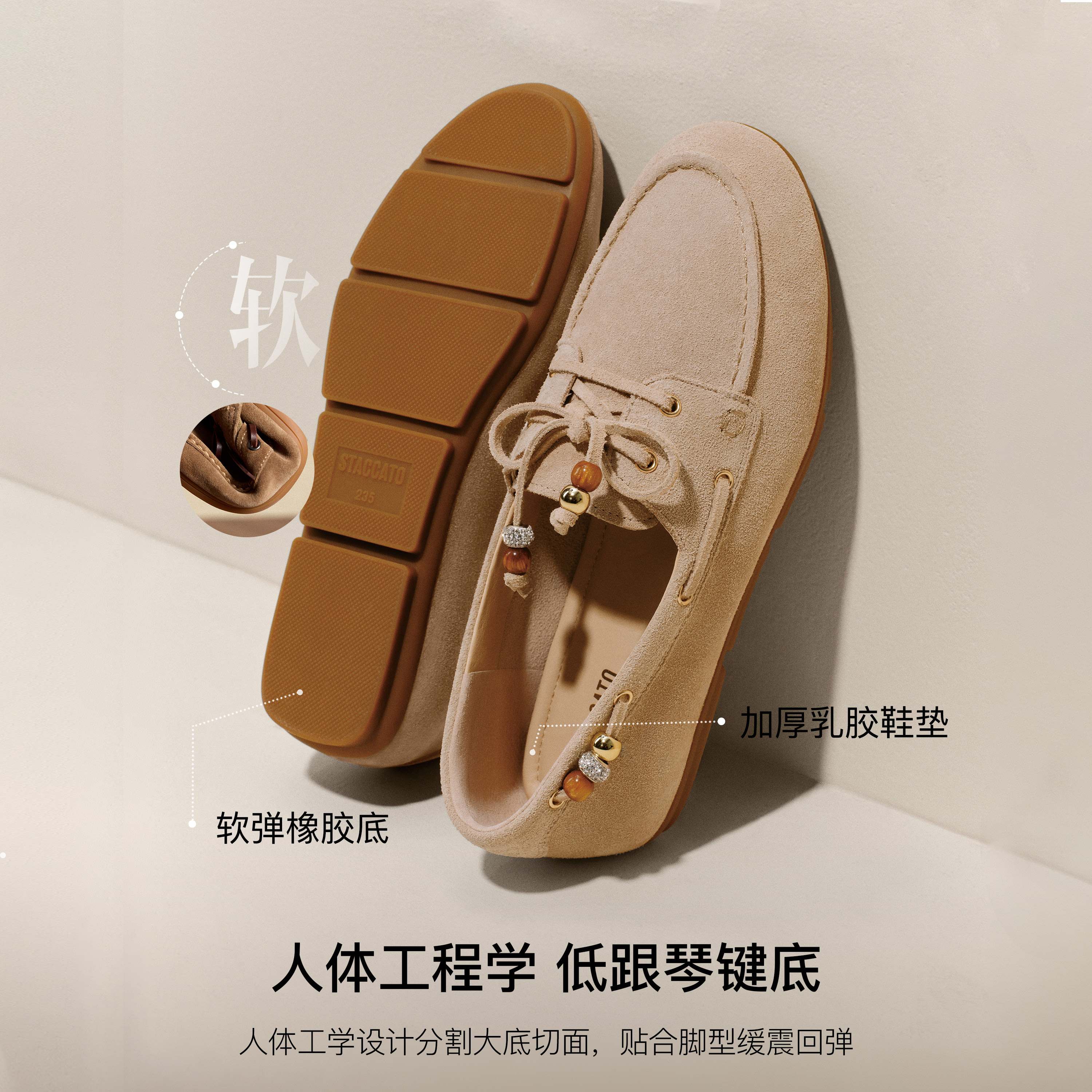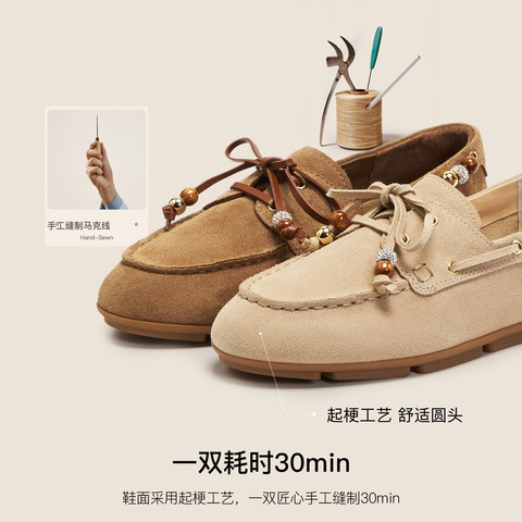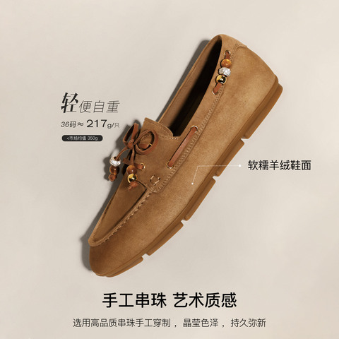 思加图2026春季新款琥珀奶油乐福鞋平底鞋一脚蹬单鞋女鞋EJR11AA6