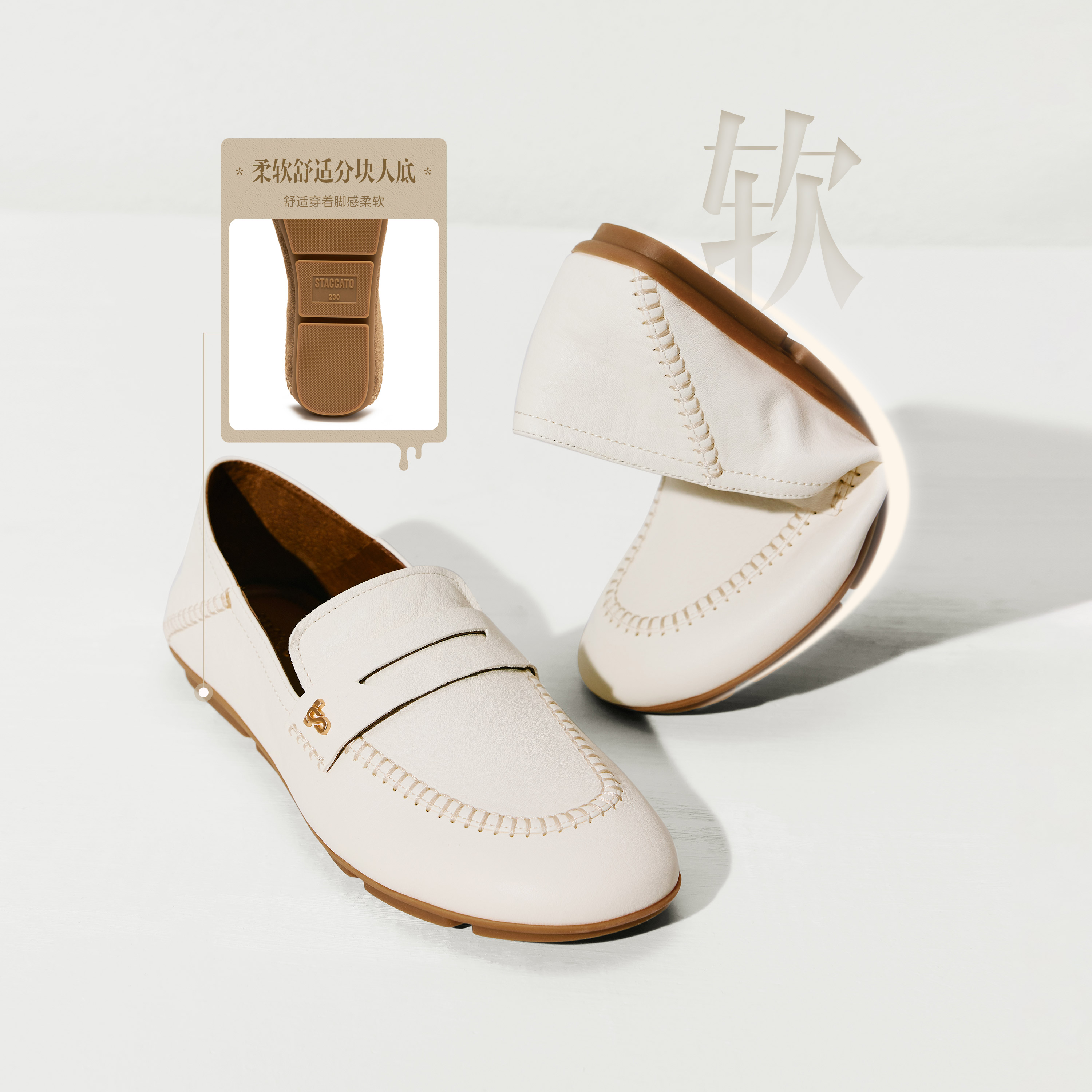 思加图2026春季新款奶油慕斯乐福鞋奶油鞋一脚蹬单鞋女鞋EG713AA6